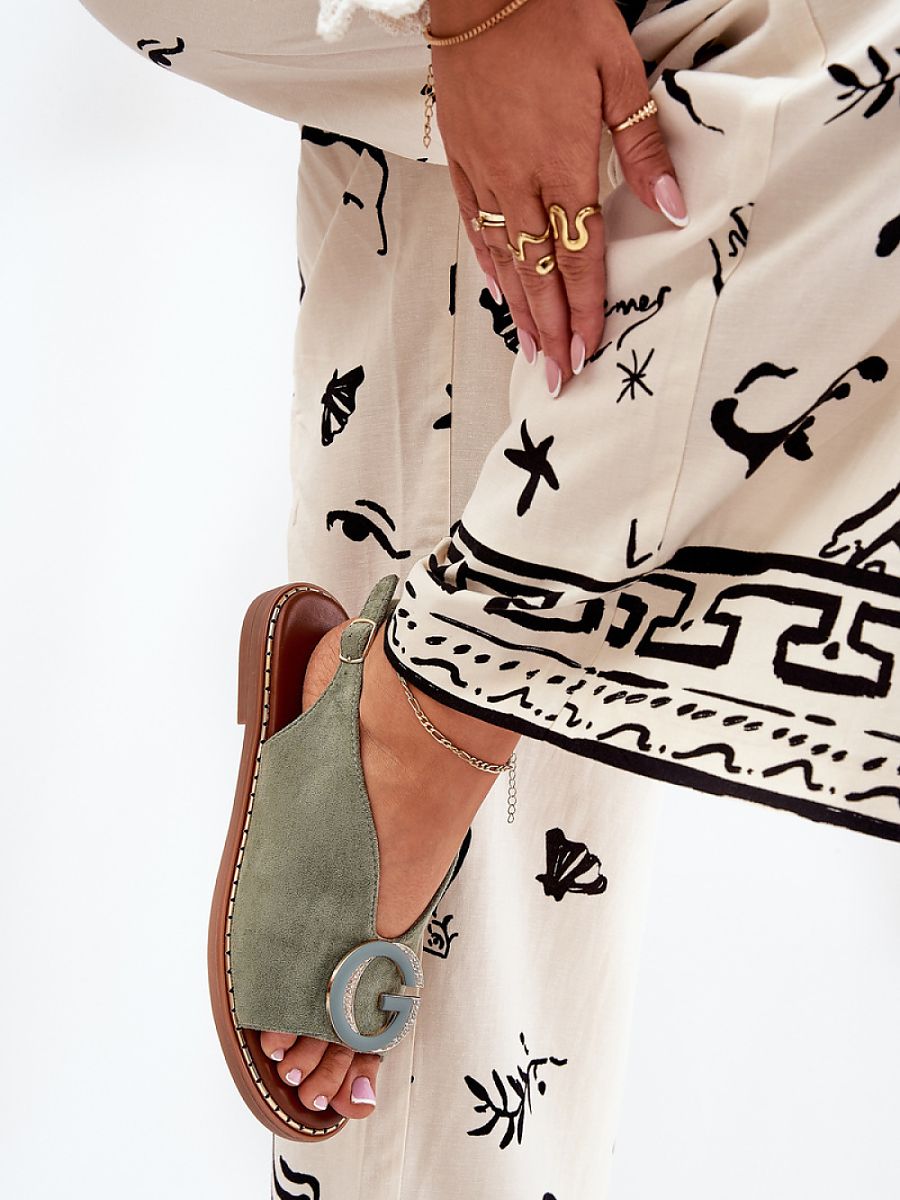 Flat women’s sandals are an excellent choice for summer days. They feature a front decoration that adds a subtle charm, and an adjustable strap with a buckle allows for a perfect fit to the foot. The eco-leather insole ensures comfort all day long. These sandals combine style and functionality, making them a perfect complement to both casual and more elegant outfits.