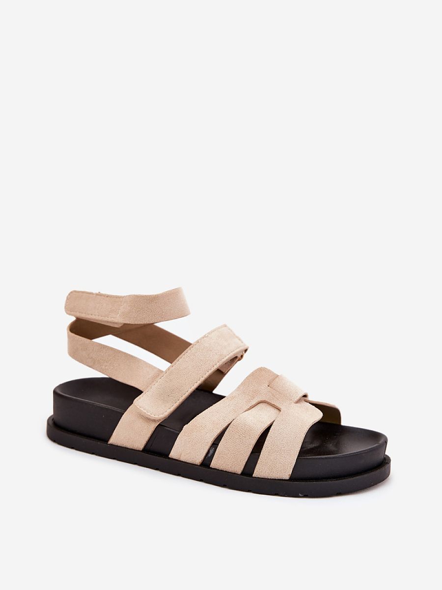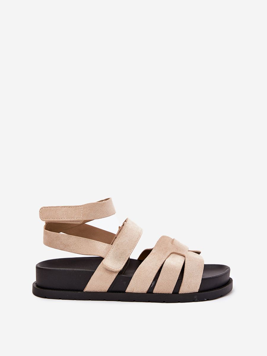 Women’s sandals made of eco suede, set on a delicate platform, are an excellent proposal for summer days. Fastened with double velcro, they ensure easy adjustment to the foot. The model stands out with a strap wrapping around the leg, which adds a unique character to them. Perfect for everyday stylizations, they combine comfort with a fashionable look.