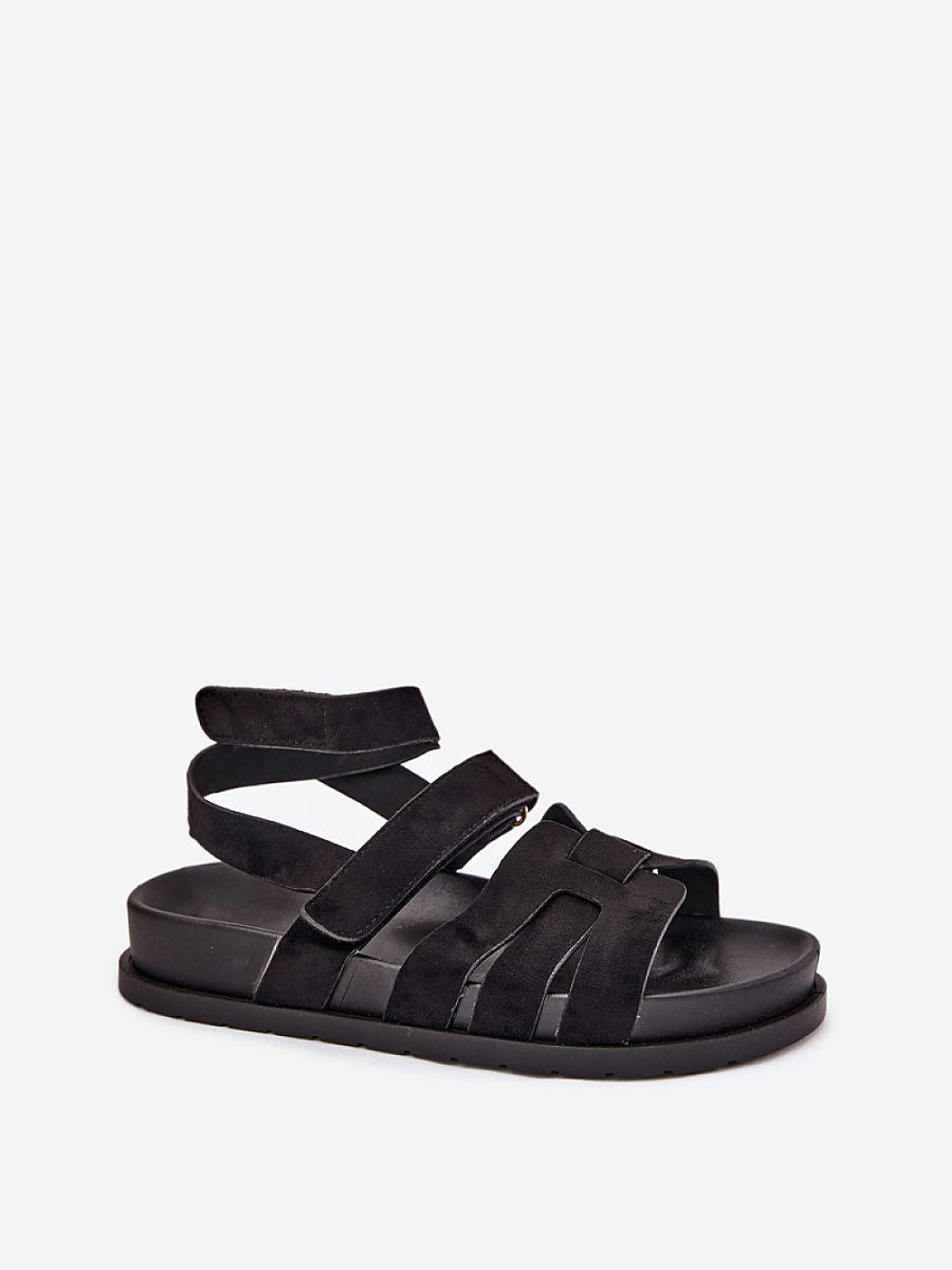 Women’s sandals made of eco-suede, set on a delicate platform, are an excellent choice for summer days. Fastened with a double Velcro, they ensure easy adjustment to the foot. The model stands out with a strap that wraps around the leg, adding a unique character to them. Perfect for everyday stylizations, they combine comfort with a trendy look.