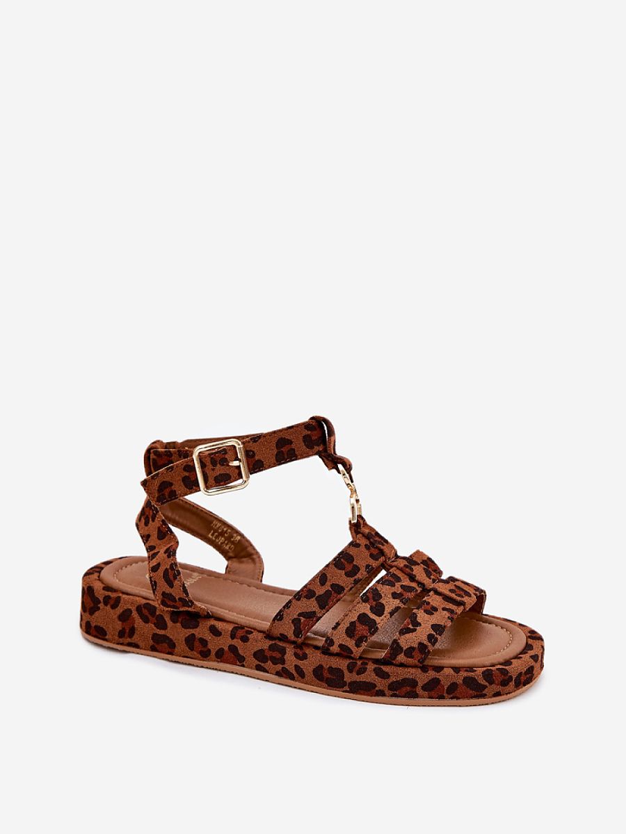 Women’s sandals made of eco suede. Set on a delicate platform, they provide comfort and stability throughout the day. Fastened with a buckle with an adjustable strap, they allow for a perfect fit to the foot. There is a subtle gold detail at the front that connects the straps. The soft insole provides comfort while walking. They go perfectly with both dresses and pants, creating a stylish look for any occasion.