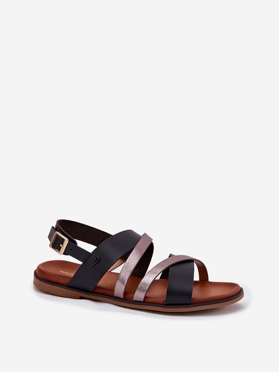 Stylish women’s sandals made of eco leather are a perfect choice for warm days. Made of ecological leather. Set on a flat heel, they provide comfort and convenience throughout the day. In the front, there are subtly intertwined straps that add character and lightness. The sandals are fastened with a buckle with an adjustable strap, allowing for a perfect fit to the foot.