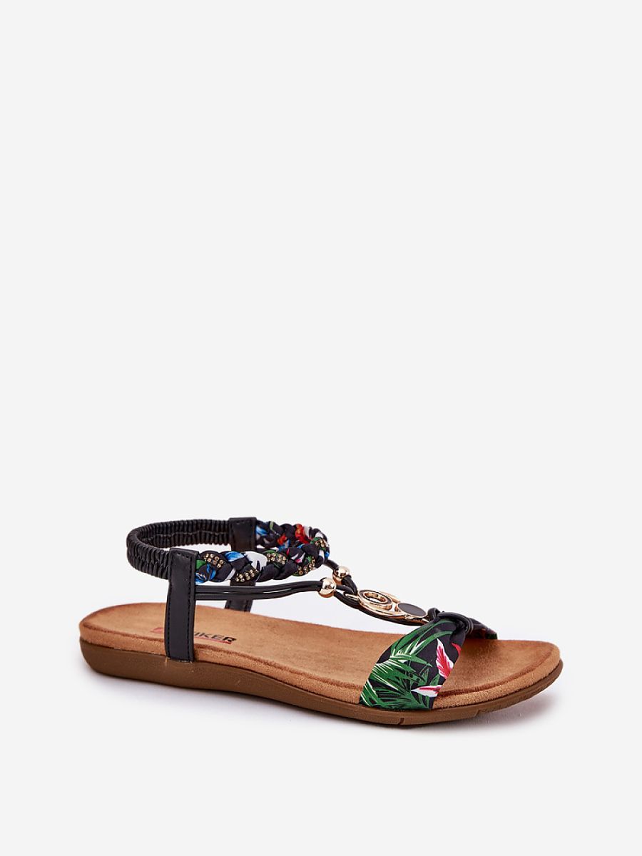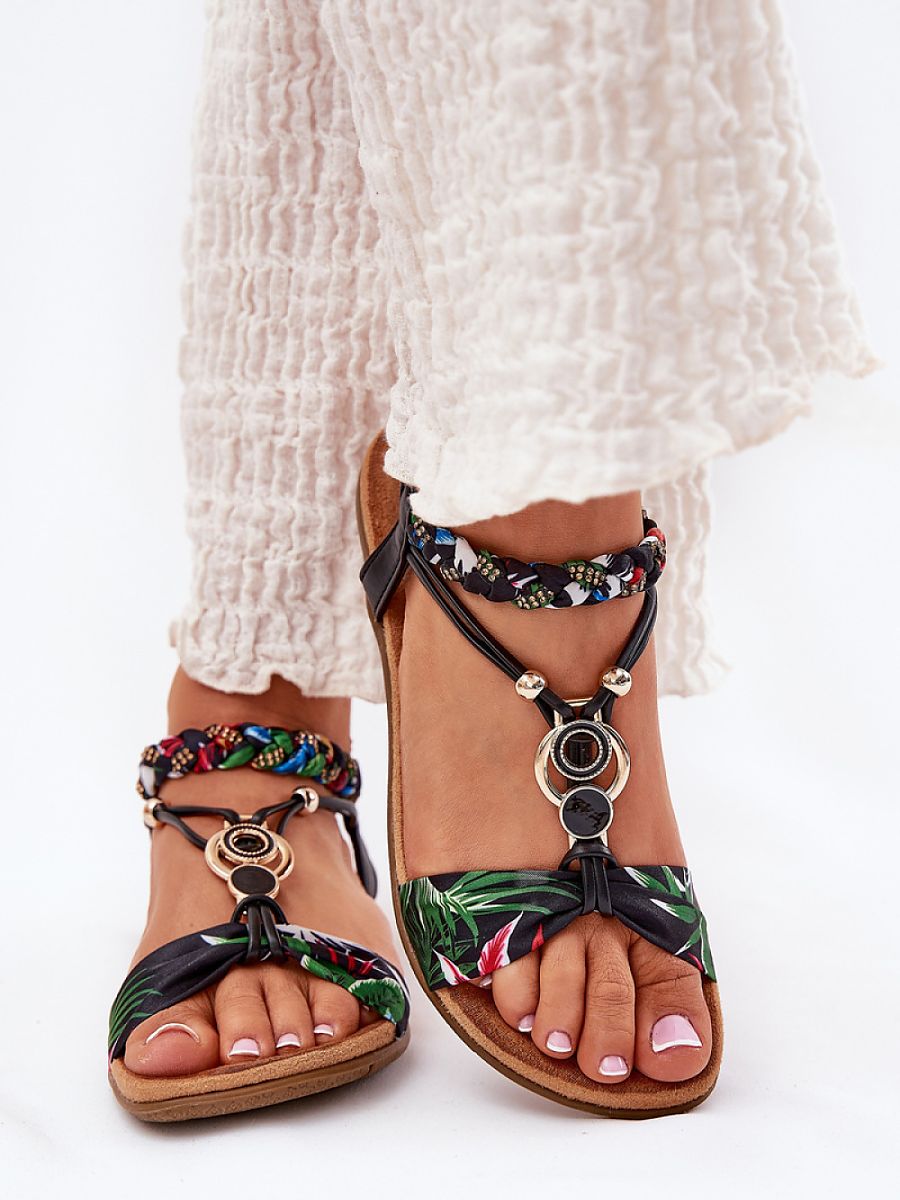Women’s sandals made of a combination of eco-leather and fabric are a perfect choice for warm days. This model stands out with a braided strap, a decoration, and sparkling zircons that add a unique charm. The flat sole and soft insole provide comfort throughout the day. These sandals perfectly complement summer stylizations, giving them lightness and a fashionable accent. Perfect for everyday outings!