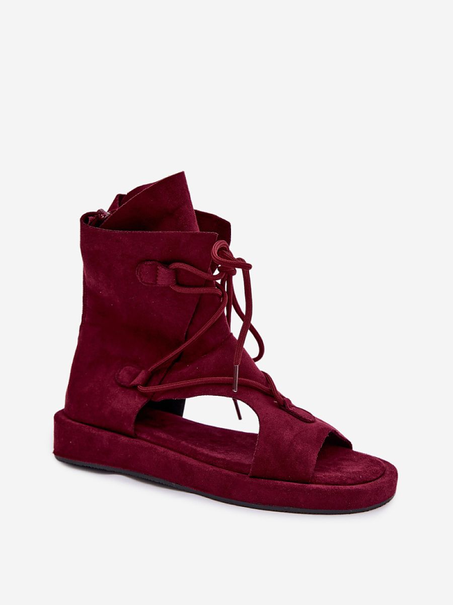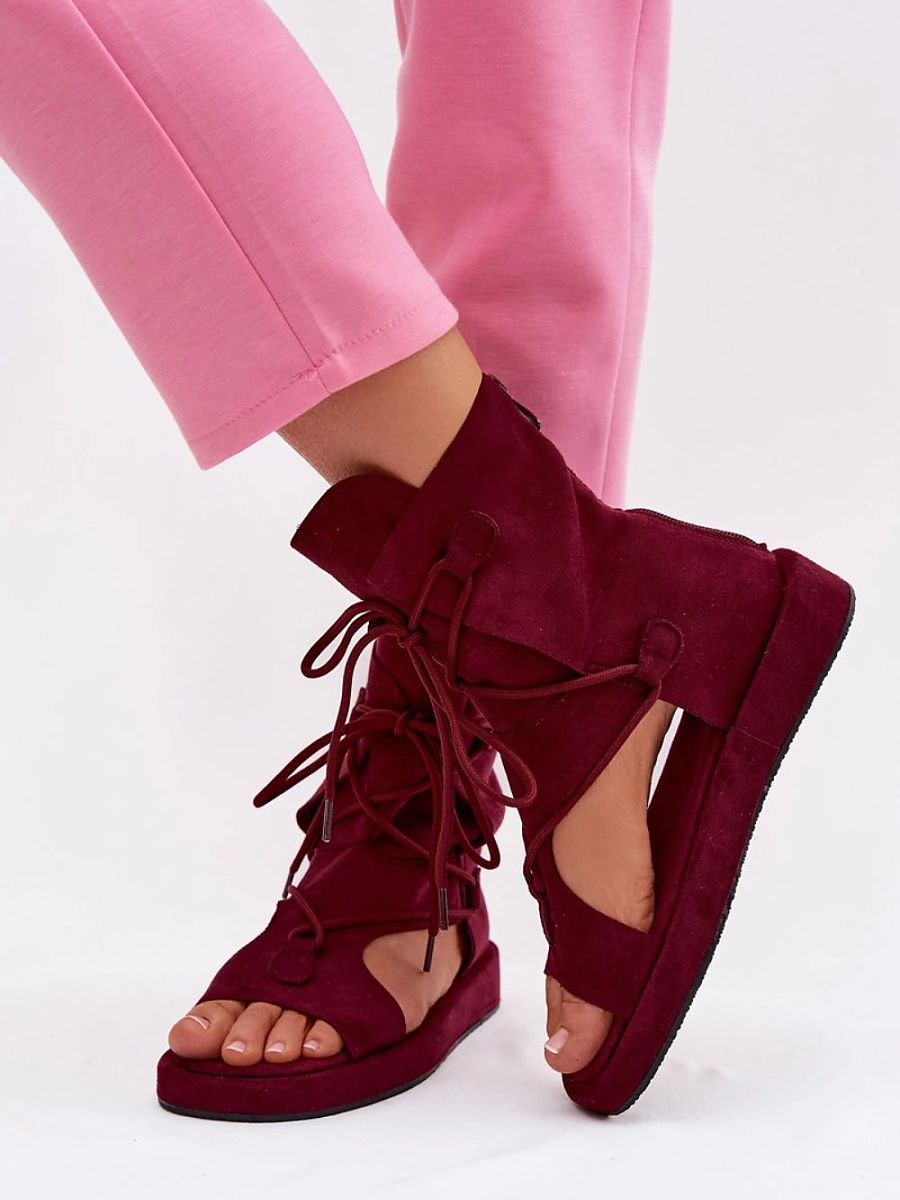 Stylish women’s sandals made of eco-suede are a perfect choice for summer days. The model with a high upper ensures a good fit and a stylish look, while the lacing at the front adds a stylish touch to the whole. The zipper closure at the back makes it easy to put on and take off the shoes quickly. These sandals go perfectly with summer dresses and boho style skirts, creating light and fashionable stylizations.