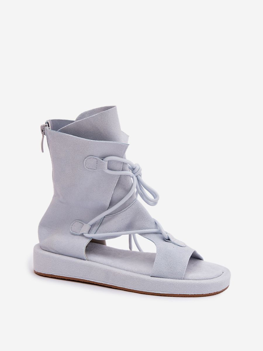 Stylish women’s sandals made of eco suede are the perfect choice for summer days. The model with a high upper provides a good fit and an eye-catching look, and the lacing at the front adds a stylish accent to the whole. The zip closure at the back makes it easy to put on and take off shoes quickly. These sandals go perfectly with summer dresses and boho-style skirts, creating light and trendy stylizations.