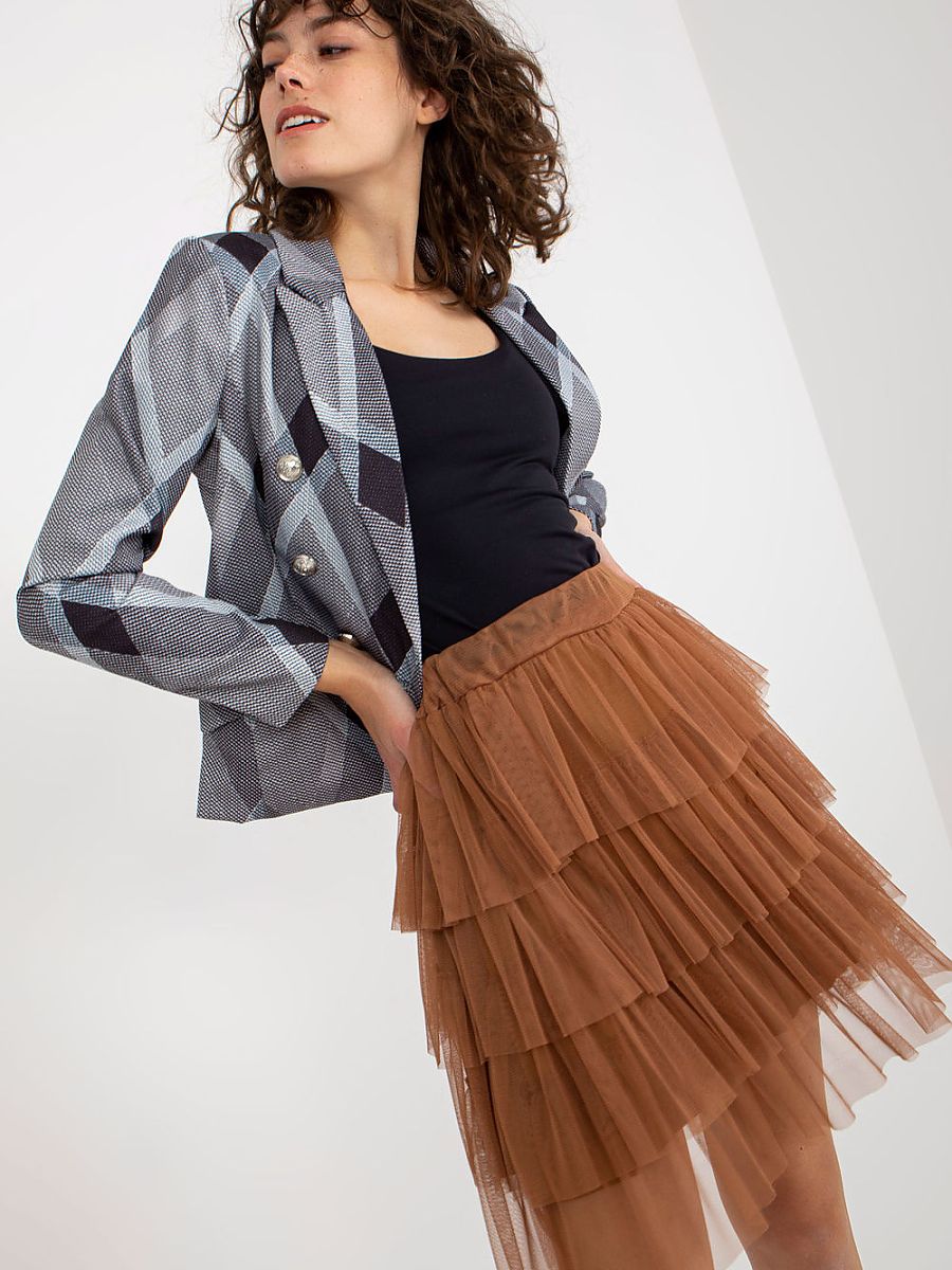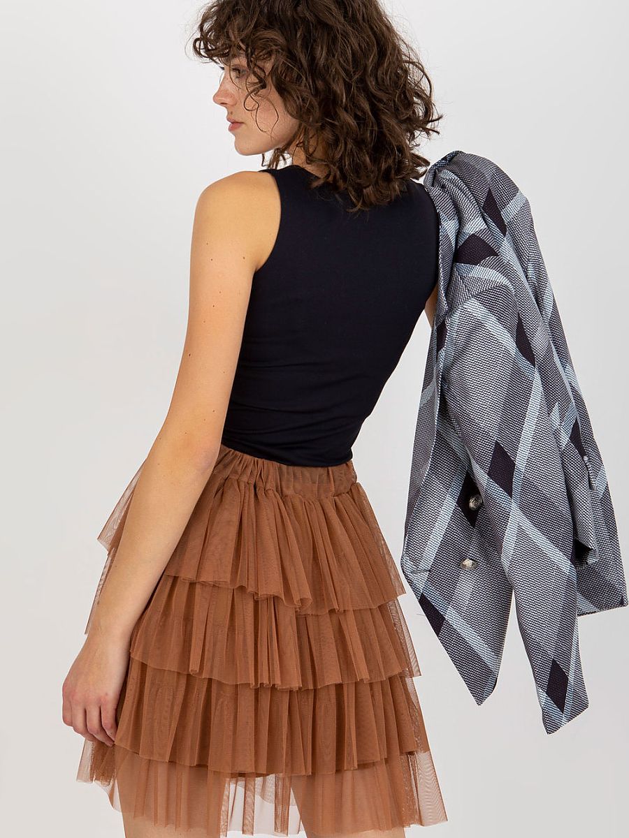 Tulle skirt with ruffles is an elegant proposal that will add lightness and feminine charm to any outfit. Made of high-quality polyester and viscose blend, it ensures comfort and beautifully drapes on the silhouette. The skirt has a smooth pattern and a mini length that accentuates the legs and gives the whole outfit a subtle but distinct character. Layers of tulle with delicate ruffles create a spectacular finish, perfect for special occasions such as parties, weddings, or evening outings. The model is equipped with a lining that guarantees comfort and provides full freedom of movement. The lack of fastening makes the skirt easy to put on and wear, and an elastic waistband (if present) further enhances comfort. This is an excellent choice for women who appreciate elegance in a trendy edition.