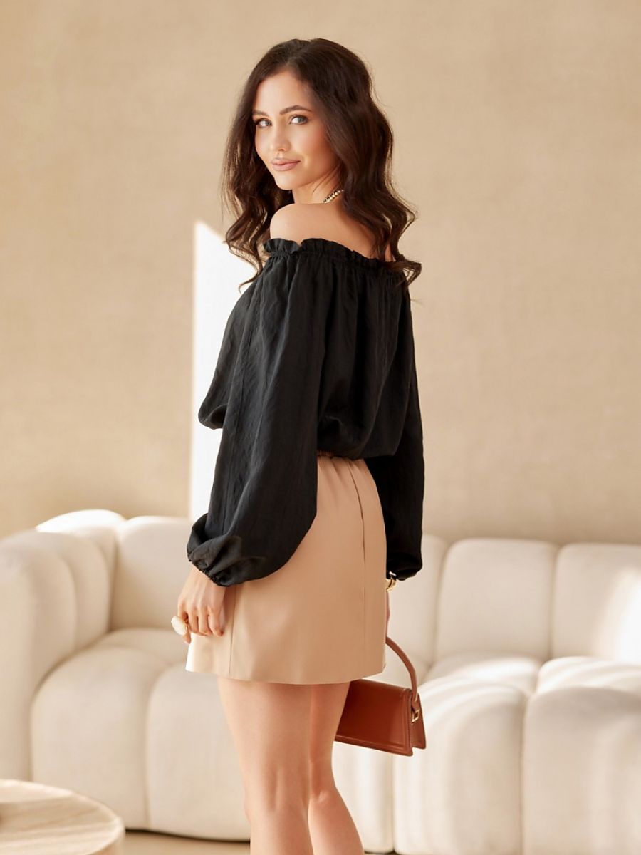 The Jackie skirt is made of leather-look material, which works perfectly in the autumn-winter season. The skirt is in a trapeze shape, which looks good on every silhouette. The reinforced waistband beautifully accentuates it, and the mini length showcases the legs. There is an elastic band sewn in the back, providing a perfect fit and guaranteeing comfort. An additional advantage of the skirt are the pockets placed on the sides. The skirt has a lining sewn in. The Jackie skirt will look great in autumn-winter stylings with an oversized sweater and chunky, laced-up boots, as well as in a more elegant version, combined with a shirt and heeled ankle boots. A large bag and a warm scarf will be a stylish addition to the entire look. A leather skirt is a perfect option for various occasions, from everyday meetings to elegant outings. The product is manufactured and sewn in Poland.