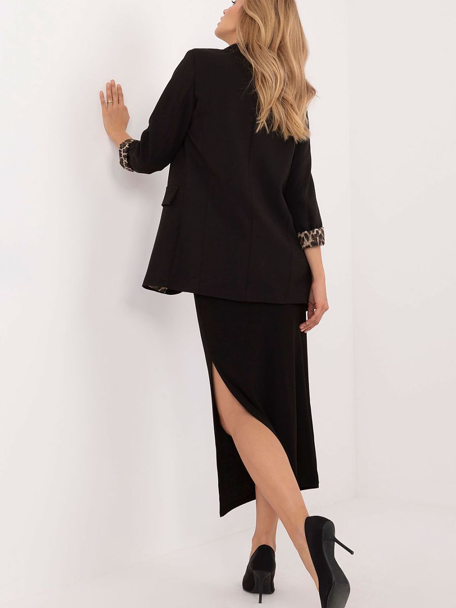 Pencil midi skirt with slit, ideal for everyday outings and for work, combining casual style with elegance. Made of ribbed material, which is a combination of polyester and elastane, the skirt fits perfectly to the silhouette, emphasizing its shape and ensuring comfort. The smooth pattern and lack of a clasp add simplicity and minimalism, while the slit at the front or side adds a feminine touch to the styling and makes it easy to move freely. This is the perfect skirt for both casual and work, combining functionality with a fashionable look.