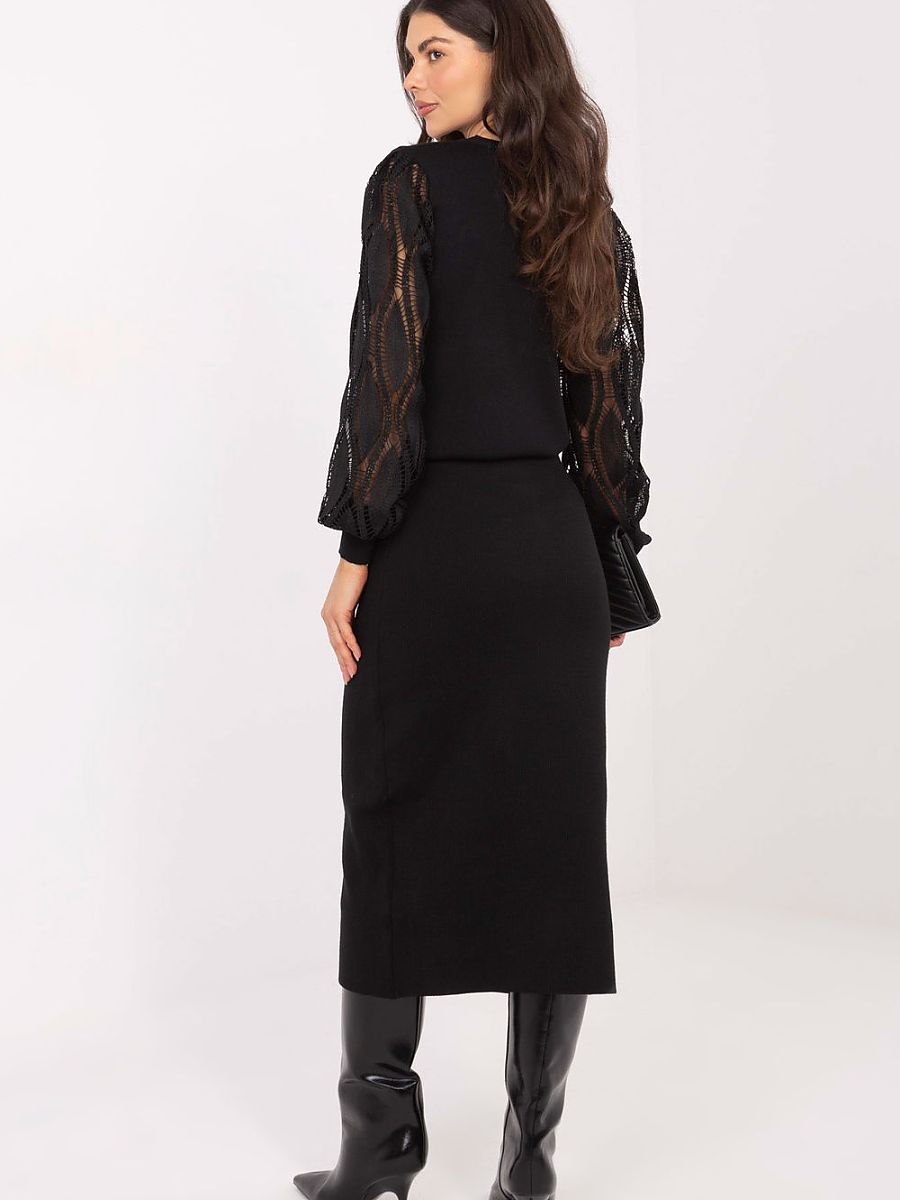 Elegant knitted skirt with a smooth pattern, perfect for everyday wear, work, and more formal occasions. Made of high-quality blend of viscose and polyester, it guarantees comfort, softness and delicate elasticity, perfectly adapting to the silhouette. The midi-length model presents a timeless, classic style. There is an elastic band at the waist, which makes the skirt fit well and provides comfort throughout the day. The lack of fastening makes it extremely practical and easy to put on. Decorative buttons are placed on the front, adding elegance to the minimalist cut. This is the perfect choice for women who appreciate the combination of class, comfort, and universal style.