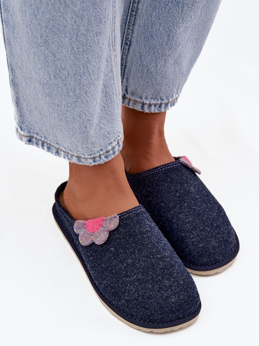 Women’s slippers from the Inblu brand are comfortable and lightweight indoor footwear, designed with everyday comfort in mind. Made of felt fabric. The model with wide, covered toes guarantees freedom of movement, and the flexible sole ensures stability and comfort while walking. The profiled insole made of natural leather supports the correct positioning of the foot and increases user comfort. The whole is complemented by a subtle decoration in the form of a flower. These are classic, practical slippers that combine functionality with high quality craftsmanship.