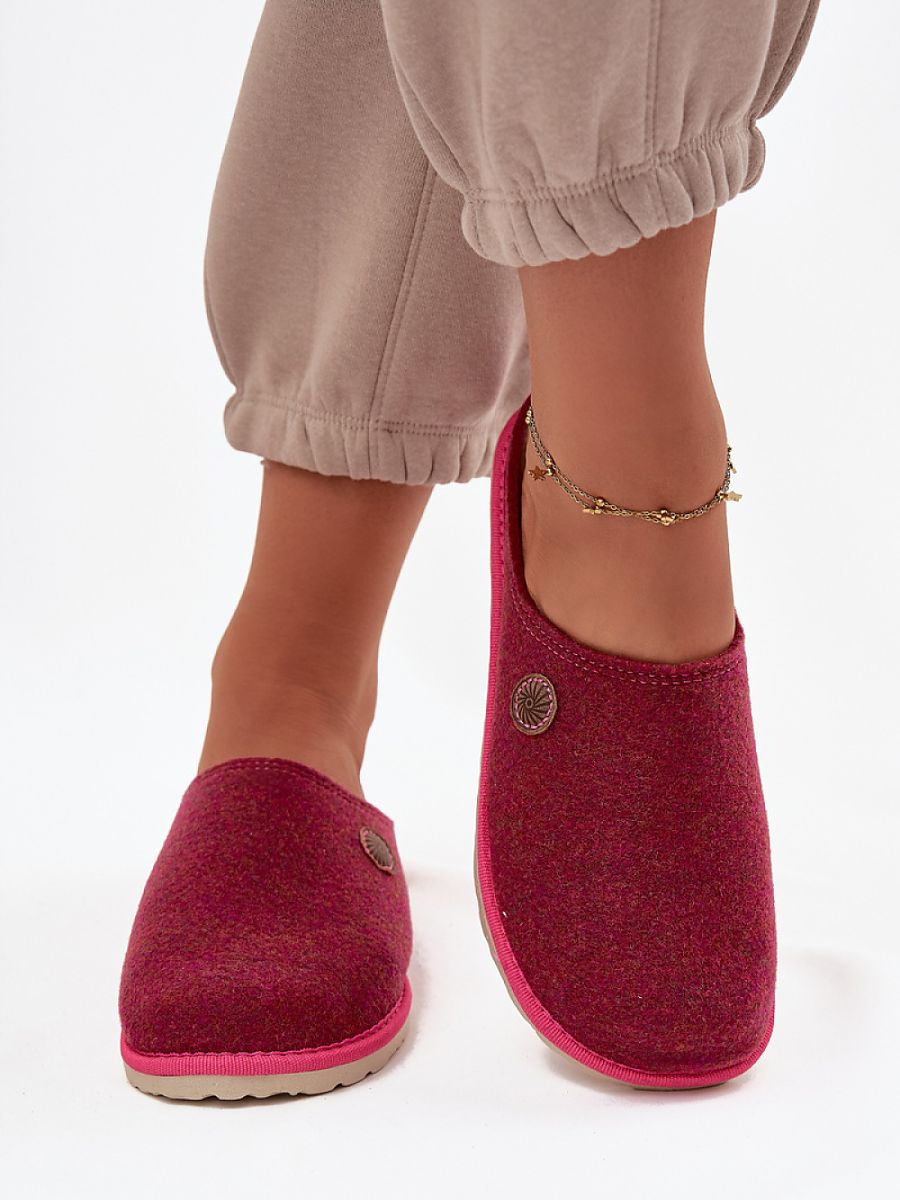 Women’s slippers by Inblu brand. Made of felt material, guaranteeing lightness and breathability, perfect for everyday use at home. The model with wide, covered and gently rounded toes ensures freedom of movement and comfortable fit to the foot. The insole made of natural leather is profiled, which increases comfort and supports the correct alignment of the foot while walking. The sole made of lightweight, flexible styrogum material has been anatomically profiled, which perfectly cushions and evenly distributes the load. These slippers combine comfort, quality, and attention to every detail, perfect for those who appreciate everyday comfort.