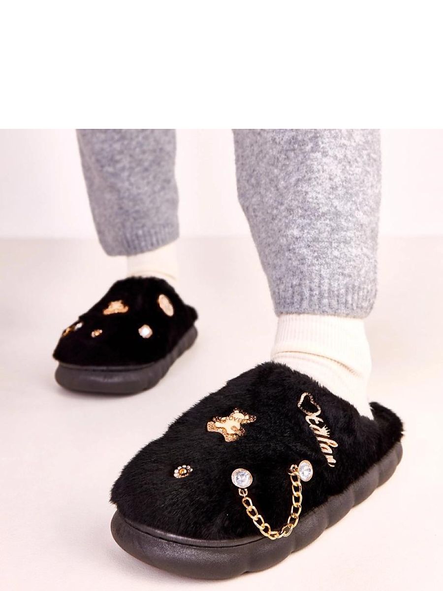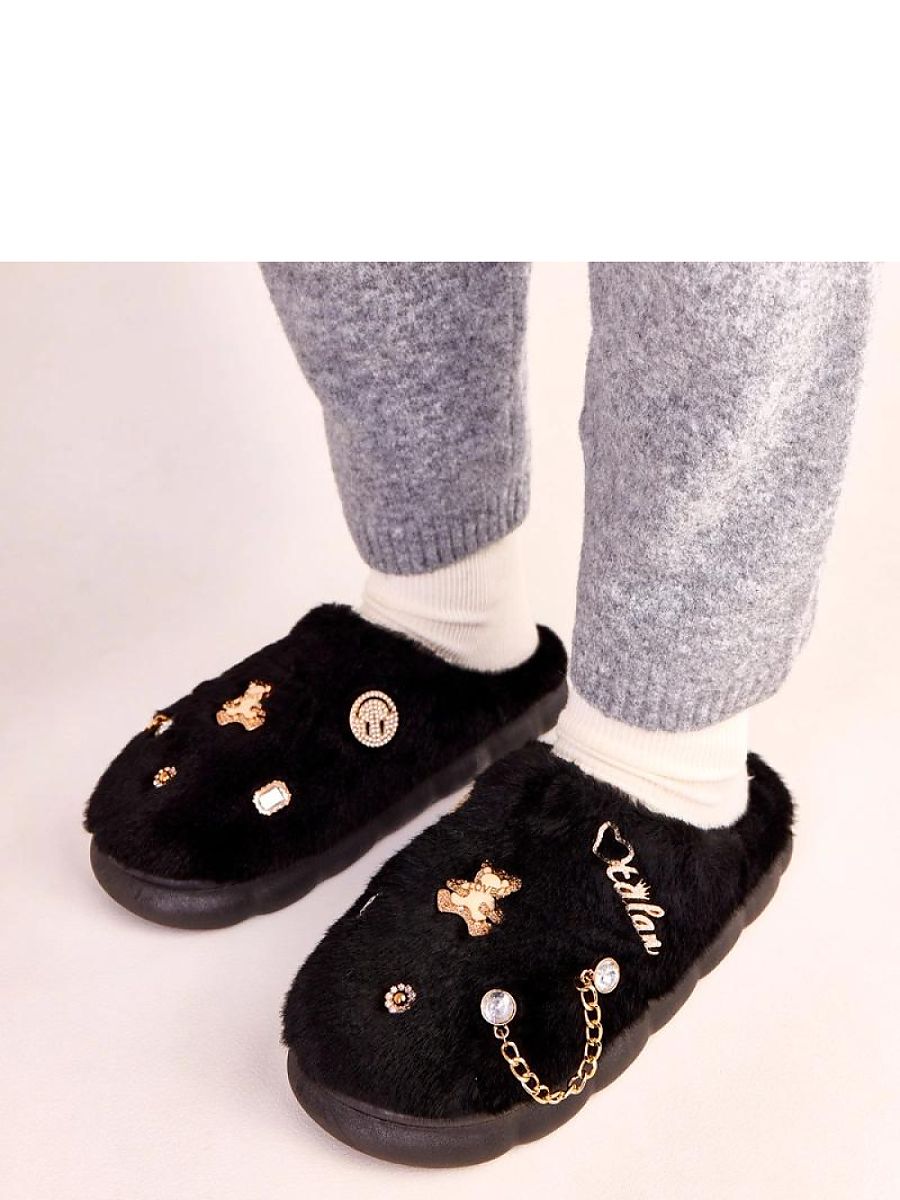 Black covered slippers with decorations Tracy are the perfect choice for those who value comfort, style, and functionality in everyday life. These elegant, black women’s slippers have been designed to provide maximum comfort while walking around the house, while also looking great. The covered upper securely holds the foot, protecting it from the cold and providing a pleasant feeling of warmth at any time of the year. The Tracy model stands out with subtle, carefully crafted decorations that give it a feminine, fashionable character. Thanks to this, covered slippers will not only work as practical home footwear, but also as a stylish addition to your favorite everyday “at-home” outfits. The classic black color of the slippers is exceptionally versatile, making them suitable for most pajamas, tracksuits, or bathrobes, and at the same time, easy to keep clean. Black covered slippers with decorations Tracy are made of soft, pleasant to the touch materials that gently envelop the foot and minimize the risk of abrasions. The interior of the slipper promotes air circulation, increasing user comfort even during longer wear. The stable, well-profiled sole increases walking comfort and provides proper grip on the surface. These are the perfect home slippers for those looking for a combination of comfort and aesthetic appearance. Although it is an undefined brand, the product is characterized by careful workmanship and attention to detail. The universal cut makes black slippers with decorations a great gift idea for mothers, sisters, or friends. They will also work as a practical addition to the travel trousseau, their covered form and lightweight construction guarantee comfort in a hotel, guesthouse, or on a plot of land. By choosing Tracy slippers, you opt for comfort, warmth, and a fashionable look all in one. If you are looking for stylish, black covered slippers for everyday wear, this model will meet your expectations in terms of comfort, design, and versatility of use.