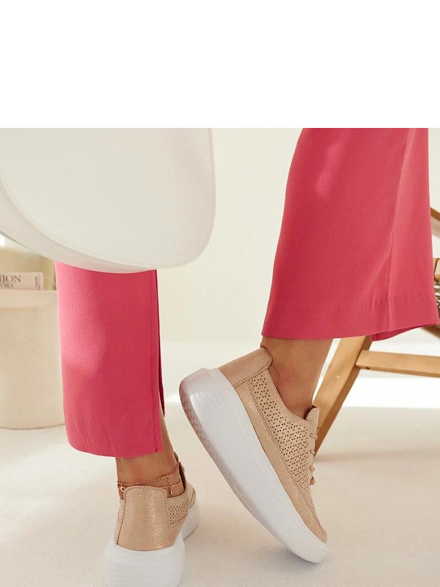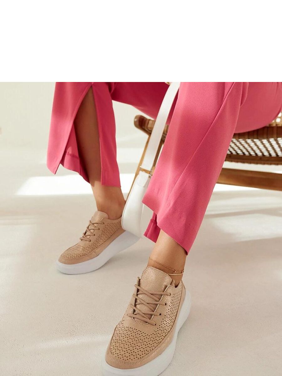 Golden platform sneakers by Lori are the perfect footwear for people who like to stand out with their style. Made of high-quality vegan leather, they provide comfort and durability. They do not have insulation, which makes them perfect for summer. The white rubber sole adds an extra visual effect and ensures good grip. The lacing closure allows you to perfectly adjust the shoes to your foot. These sneakers will definitely be a great addition to your summer wardrobe.