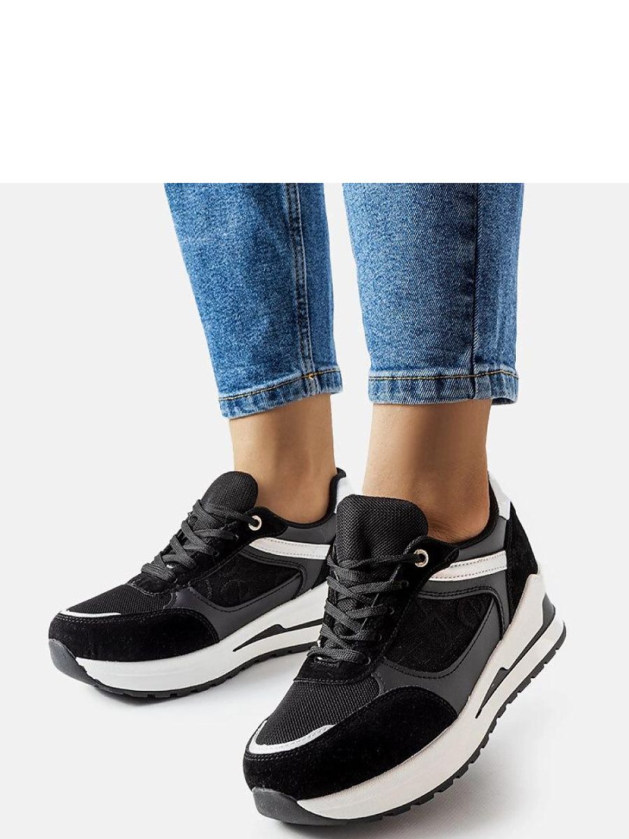 Product description: Black sneakers with an elegant Genovesee insert are a perfect choice for the upcoming spring and summer. The shoes have a black rubber sole that provides stability and comfort while walking. The lace-up closure ensures a perfect fit to the foot. Sneakers are perfect for everyday wear as well as for more formal occasions. They add style and class to any outfit. Available in a wide range of sizes.