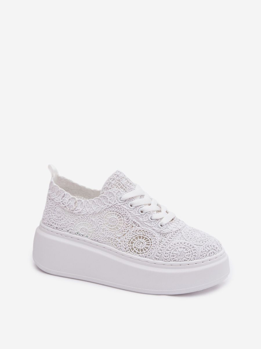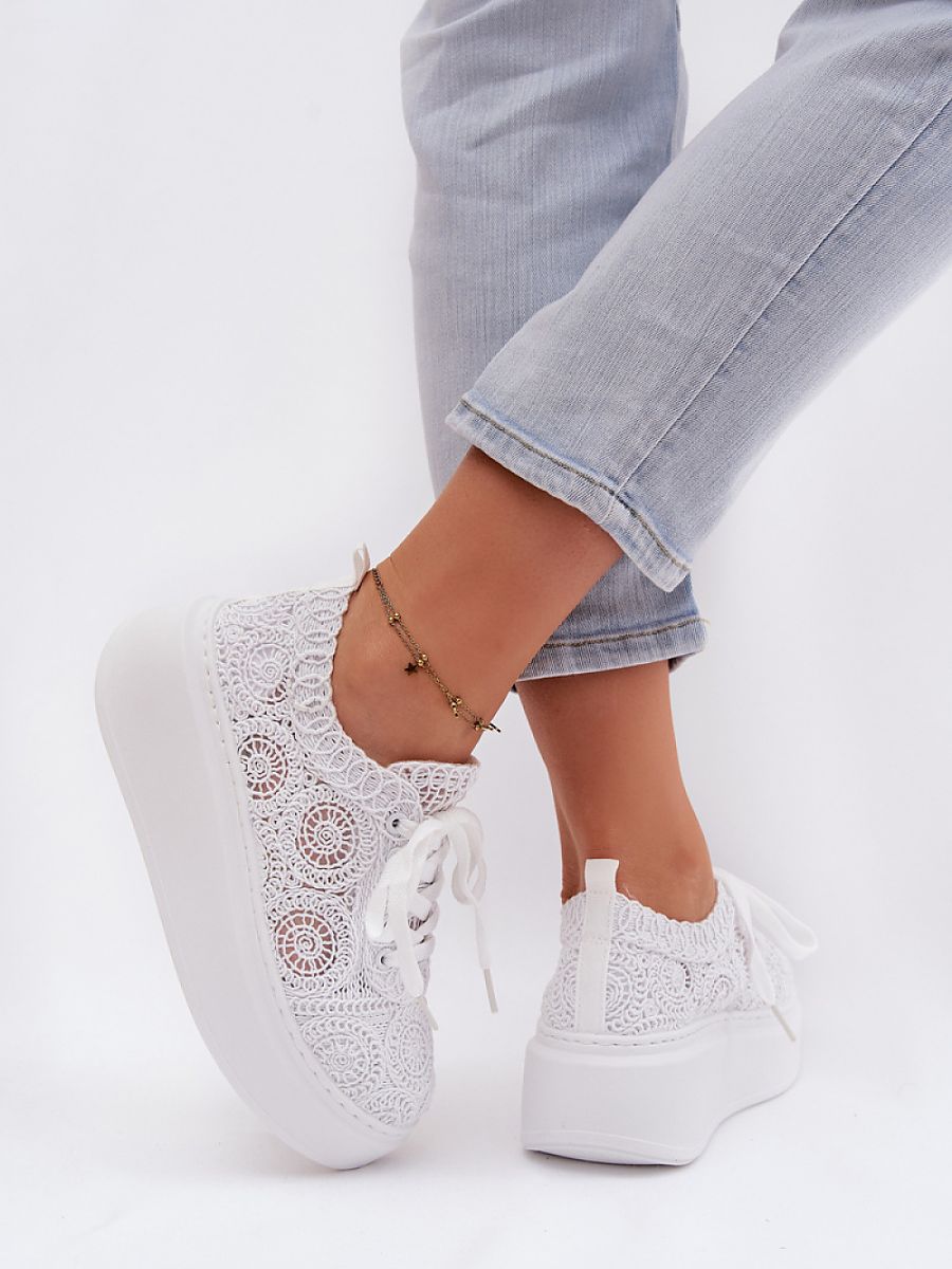 Stylish women’s sneakers with crocheted uppers are an original proposal for warm days. The lacy texture gives them lightness and a summery character, while the platform subtly raises the silhouette, ensuring stability at the same time. The soft insole ensures comfort all day long. This model will work perfectly in everyday stylizations, adding a fashionable and unconventional accent to them.