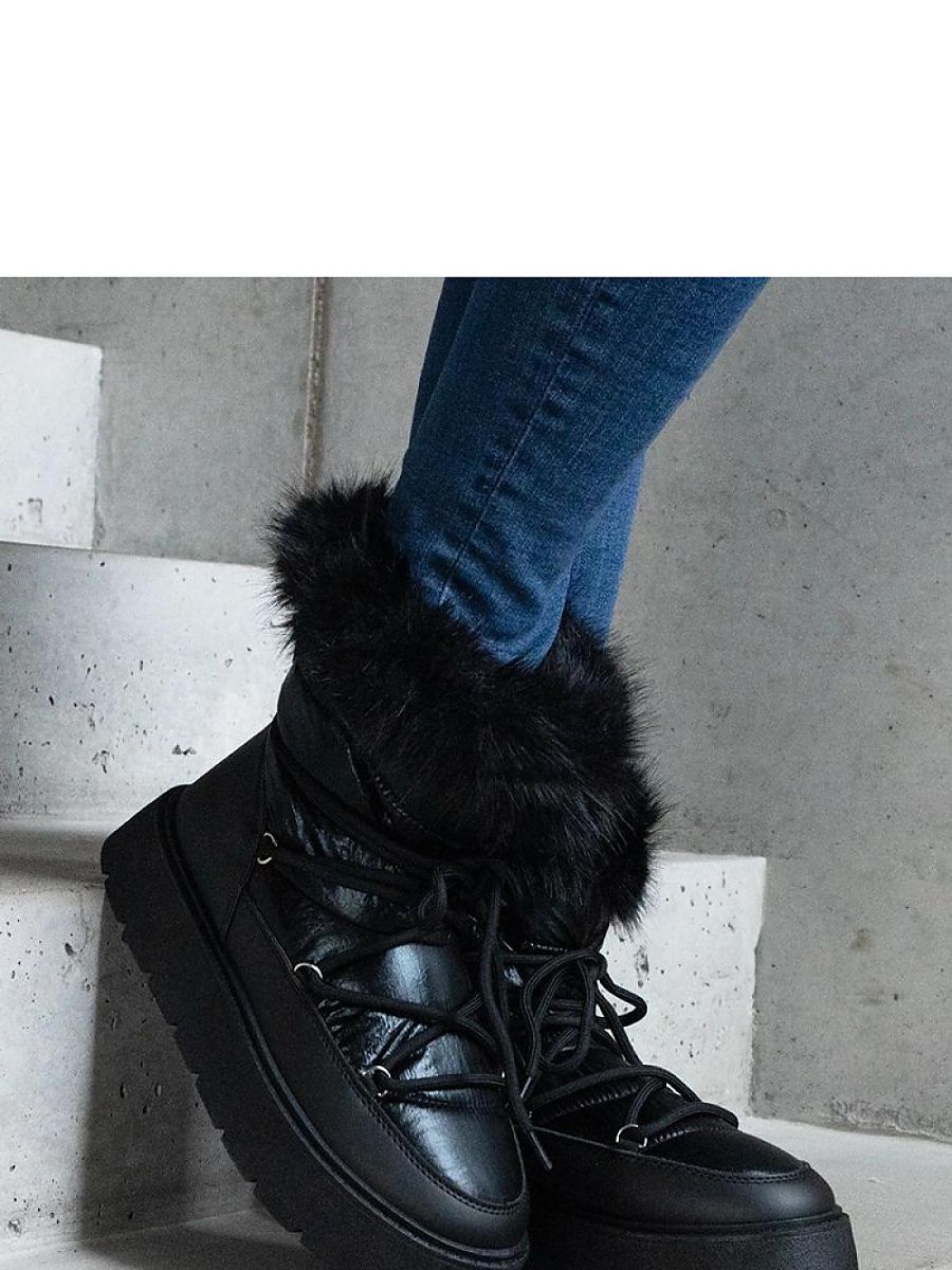 Black insulated snow boots with fur lining Arilla are the perfect footwear for winter. Their round toe and high design not only ensure a fashionable look, but also excellent protection against cold and moisture. Made of high-quality insulated rubber, these snow boots are an essential addition for winter activities. The lace-up closure guarantees a perfect fit to the foot. Add them to your collection now and enjoy comfort and style while walking around the city or going skiing!