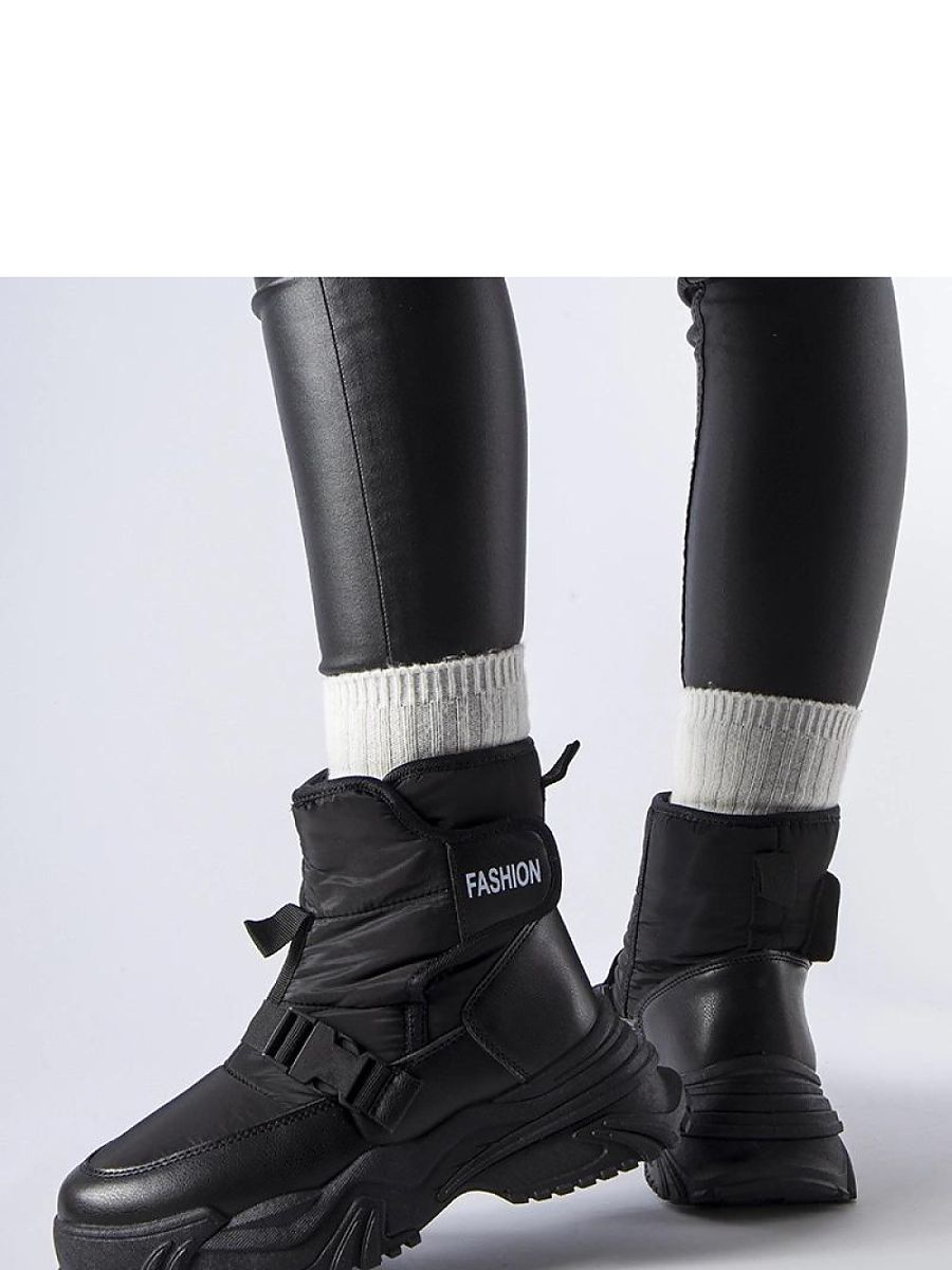 Black lined snow boots with Velcro from Mernicco are the perfect winter footwear that combines functionality with trendy design. Thanks to the use of Velcro, putting on and taking off these boots is extremely easy and fast. Additionally, the presence of a platform under the foot provides stability and comfort while walking, even in difficult weather conditions. The lined insole inside the shoe keeps warmth even on the coldest days, and the rubber sole protects against slipping on slippery surfaces. The round toe and high ankle finish add elegance and a modern character to the boots. These snow boots are versatile and suitable for both everyday wear and more formal occasions. The medium heel adds feminine charm to them, while providing stability while walking. Black lined snow boots with Velcro from Mernicco are an excellent choice for fashionable women who value comfort, quality, and style in one.