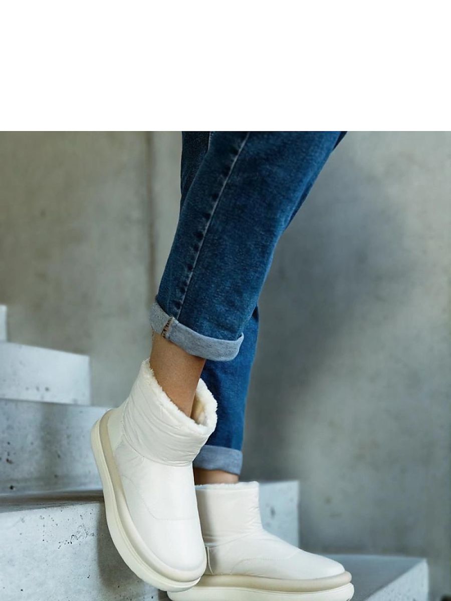 Cores beige warm platform snow boots are not only practical, but also stylish. Their medium platform heel adds originality and makes legs appear slimmer. Made of rubber, the soles ensure confident steps even on slippery surfaces. In addition, the slip-on model makes it easy to put on and take off, which is very practical when leaving the house quickly.