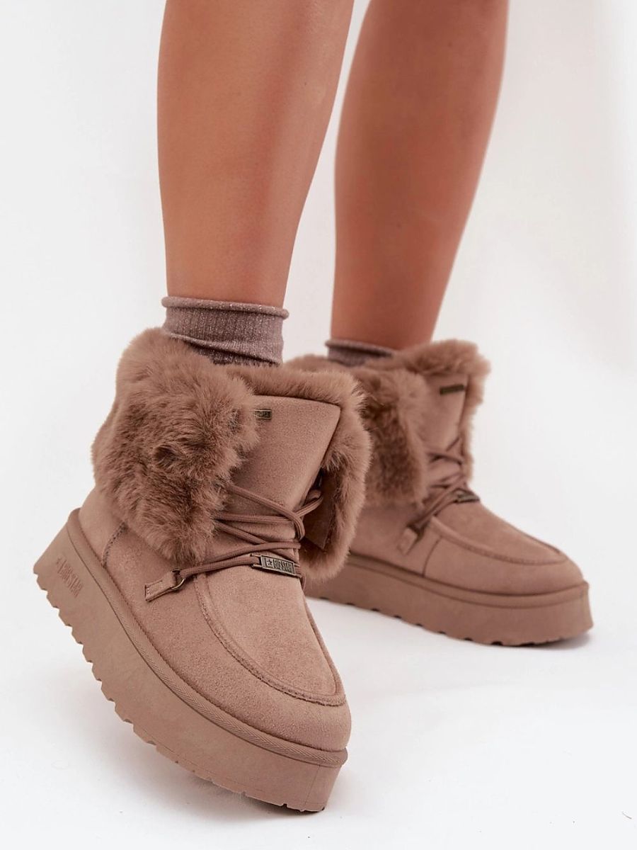 Women’s snow boots from Big Star are a must-have for winter days! Made of eco-suede and equipped with a waterproof membrane, they will provide you with warmth and dryness, even on the coldest days. Set on a platform, they add comfort and lightness, and the soft fur inside and at the top of the upper will guarantee comfort. Additionally, the front lacing gives them a fashionable character. Perfect for winter walks, they combine functionality with stylish design!