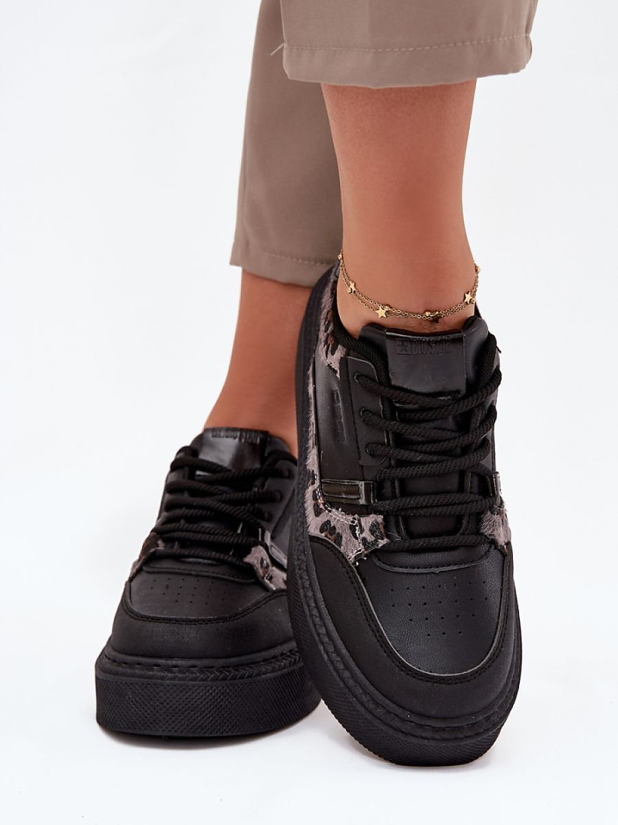 Women’s sneakers from Big Star. Made of eco leather, placed on a platform that adds height and slims the silhouette. Soft insole provides comfort throughout the day, and classic lacing allows for a perfect fit. Perfect for everyday stylizations, these sneakers will be a great addition to any wardrobe, adding lightness and style.