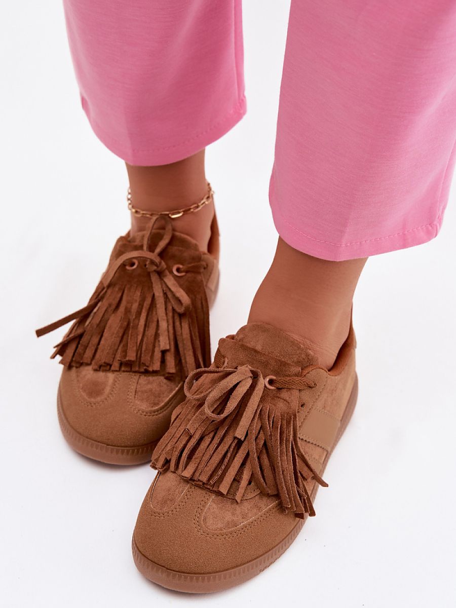 Stylish women’s sneakers made of eco suede are an original proposal for women who appreciate a fashionable look and comfort. The front of the shoe is decorated with decorative fringes that can be easily removed, giving the model a universal character. The soft foam insole, additionally covered with fabric, ensures comfort throughout the day. These sneakers will work perfectly in everyday, urban stylizations.