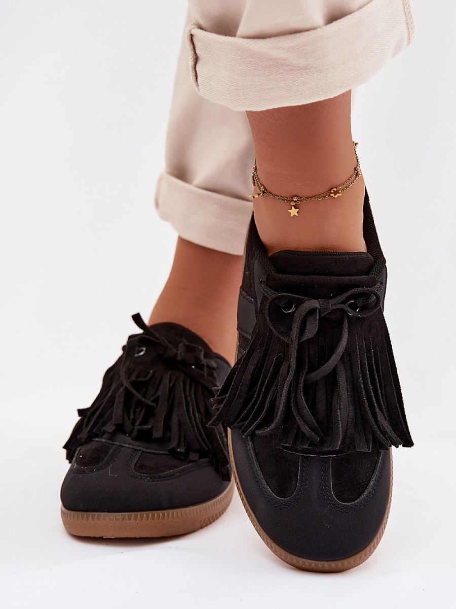 Stylish women’s sneakers made of eco-suede are an original proposal for women who appreciate a fashionable look and comfort. The front of the shoe is adorned with decorative fringes that can be easily removed, giving the model a universal character. The soft foam insole, additionally covered with material, ensures comfort throughout the day. These sneakers will work perfectly in everyday, urban stylizations.