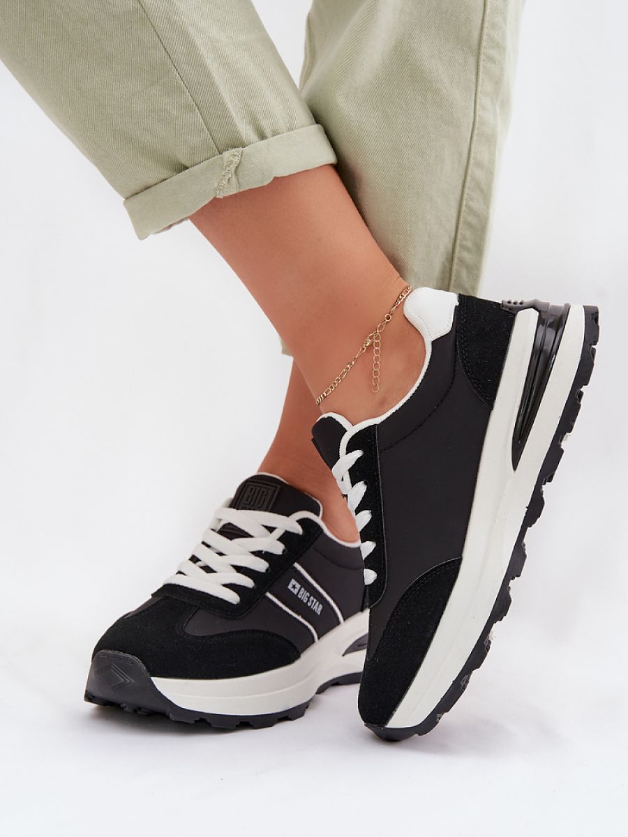 Women’s sports shoes from the Big Star brand are the perfect combination of style and functionality. Made of eco leather, they look aesthetically pleasing and are easy to care for, making them perfect for everyday use. The model is distinguished by the innovative HI-POLY SYSTEM insole, made from recycling. It is breathable, effectively absorbs moisture, and ensures proper air circulation. Additionally, it cushions shocks, increasing comfort while walking, and its durability and resistance to abrasion and deformation mean that it retains its properties for a long time. This is comfortable and practical footwear that will work perfectly in active, everyday stylizations.