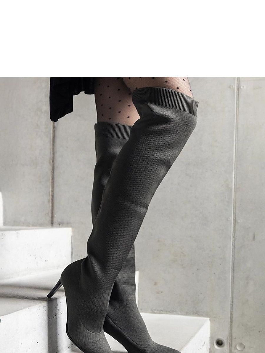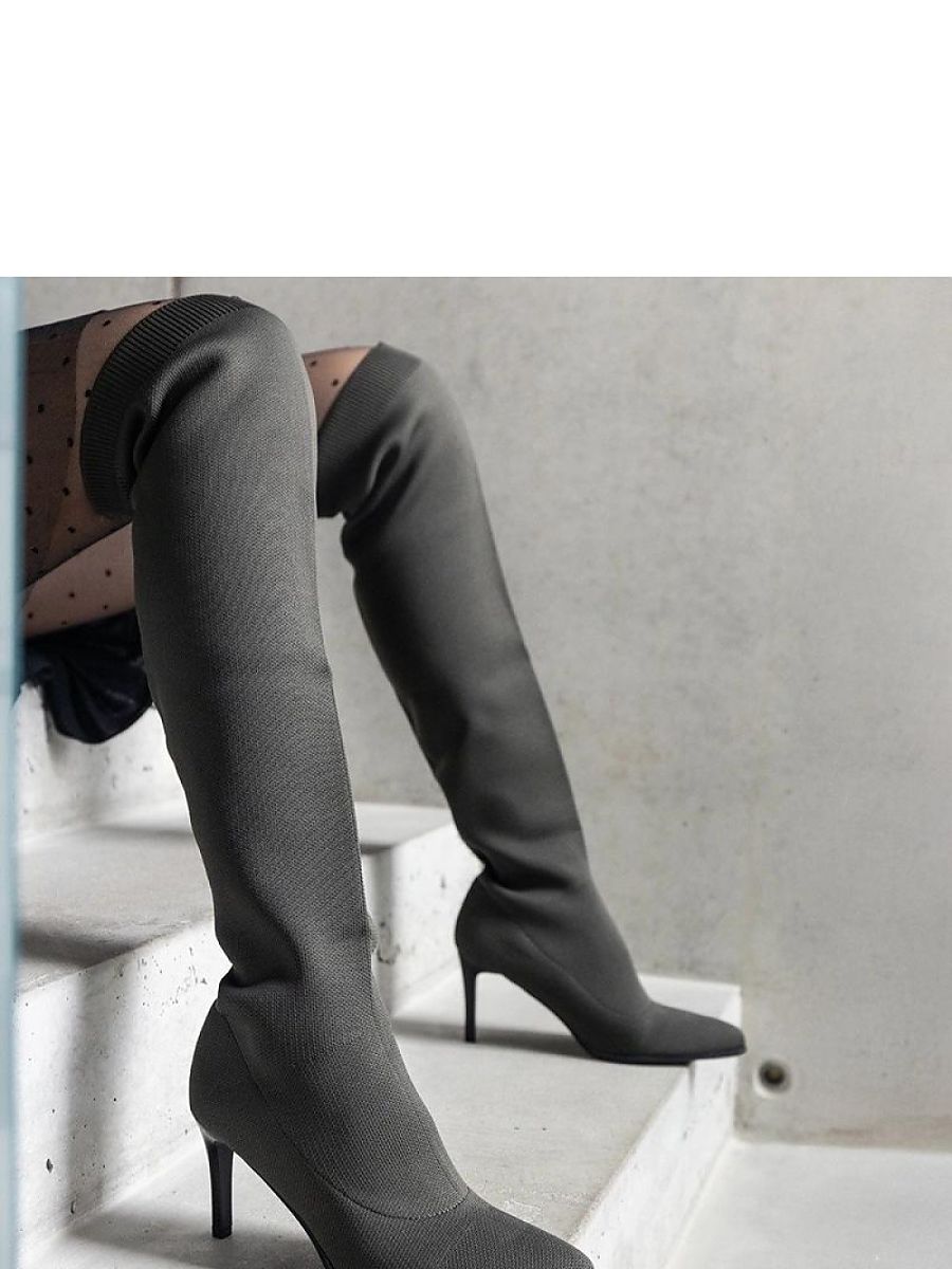 Green stiletto heeled boots with a flexible Atari upper are a must-have accessory this season! Made of synthetic material, they are insulated and perfect for winter, providing warmth and comfort even on the coldest days. Their innovative cut with a pointed nose adds elegance and style, while the slip-on design makes them easy and comfortable to put on. An excellent choice for any woman who wants to look fashionable and feel good, regardless of the weather conditions. The outer material is fabric, the sole is made of green plastic. The slip-on closure makes it easy to dress and undress quickly. Ideal for the fall/winter season.