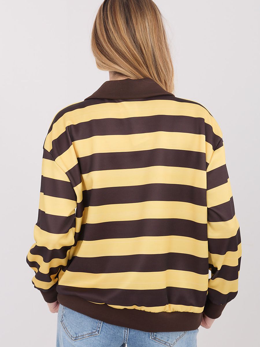Women’s striped blouse is a comfortable and stylish proposition in a casual version, perfect for everyday wear. Made of soft and pleasant to the touch material that is a combination of viscose and elastane, it provides wearing comfort and freedom of movement throughout the day. The classic striped pattern gives the blouse a timeless character and makes it easy to match with many stylizations. A model of standard length with long sleeves will work perfectly on cooler days. The collar with a short zipper is a practical and stylish detail that allows you to adjust the neckline according to your preferences. The blouse does not have additional fastening, making it comfortable and easy to put on. It is a versatile wardrobe piece that goes well with jeans, fabric pants, or leggings, creating comfortable and stylish everyday outfits.