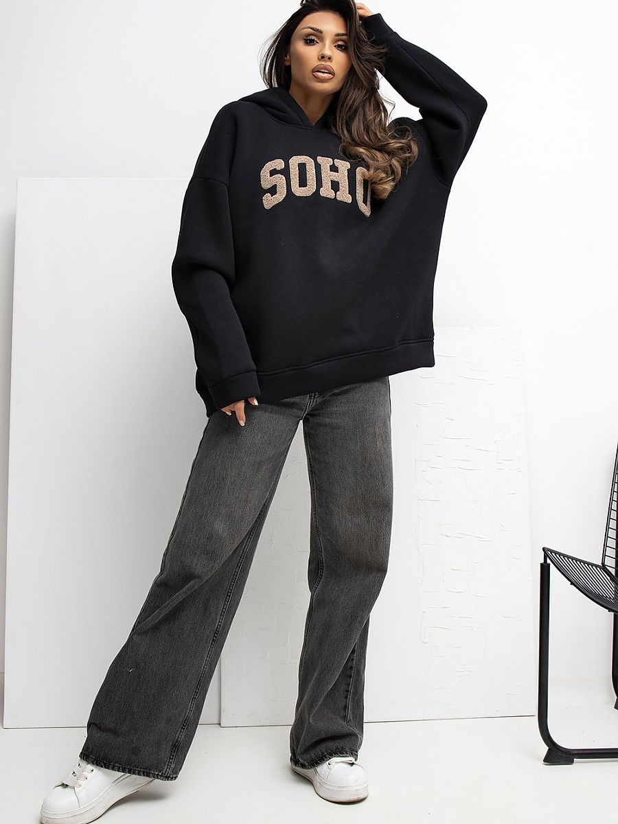 Women’s casual style sweatshirt is an ideal proposition for everyday wear, combining comfort with a fashionable look. Made of high quality cotton with a touch of elastane, it is soft, elastic and pleasant to wear, providing comfort throughout the day. On the front, there is a contrasting inscription that gives the sweatshirt a modern and distinctive character. The standard length model, with long sleeves and a practical hood, will work perfectly on cooler days. The sweatshirt is put on over the head, without fastening, ensuring freedom and ease of use. An additional advantage is the insulation, which increases thermal comfort and makes it an ideal choice for autumn and winter.