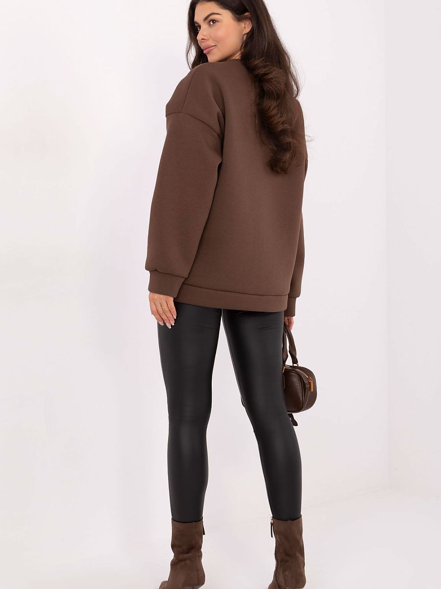 Stylish women’s sweatshirt in a casual edition is a comfortable choice for everyday outings. The print on the front adds character and makes every outfit gain a fashionable, unique accent. The sweatshirt, of standard length, with long sleeves and a classic round neckline, provides comfort and freedom of movement. The lack of fastening emphasizes the simple, timeless form, and the insulation ensures pleasant warmth on cooler days. Made of high-quality cotton and elastane blend, the sweatshirt is soft, elastic, and durable. It is the perfect choice for women who appreciate comfort, functionality, and casual style for everyday wear.