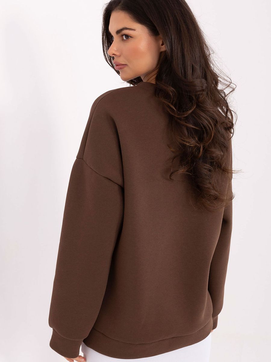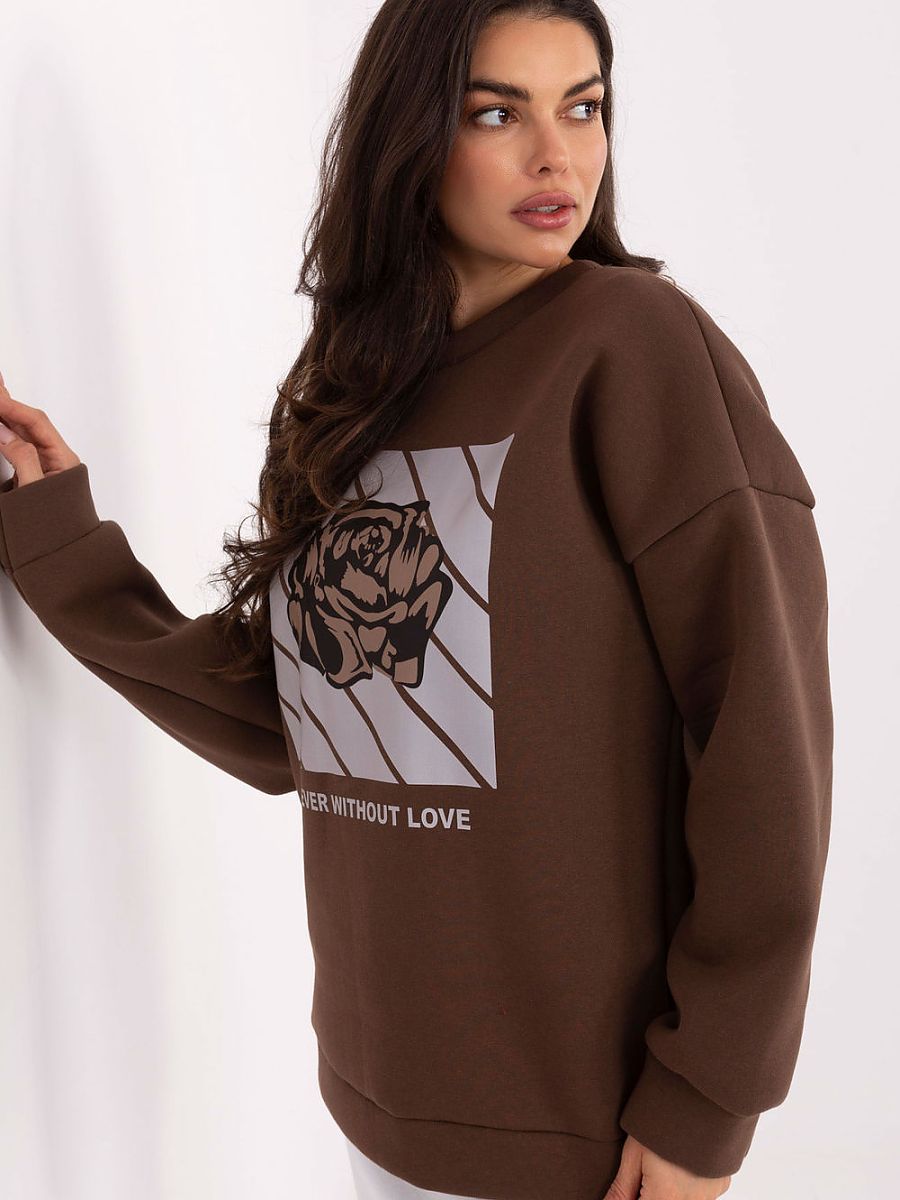 Stylish women’s sweatshirt in a casual version is a comfortable proposition for everyday outings. The model with a print and inscriptions on the front adds character and makes every styling gain a fashionable, original accent. The sweatshirt of standard length, with long sleeves and a classic round neckline, provides comfort and freedom of movement. The lack of fastening emphasizes the simple, timeless form, and the insulation guarantees pleasant warmth on cooler days. Made of high-quality cotton and elastane blend, the sweatshirt is soft, flexible, and durable. It is the perfect choice for women who appreciate comfort, functionality, and casual style in everyday life.