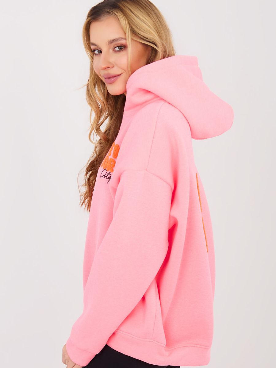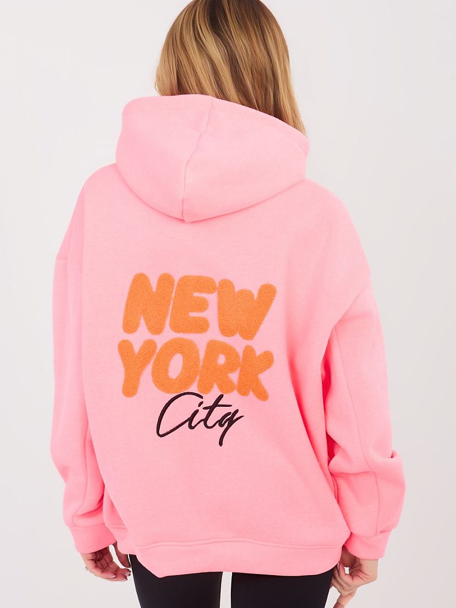 Women’s casual sweatshirt is an ideal choice for everyday wear, combining comfort with a trendy, universal style. Made of high-quality blend of cotton and polyester, it provides comfort, durability, and easy care. The standard length makes the sweatshirt fit perfectly on the silhouette and goes well with many stylizations. The model has long sleeves and a hood, which adds a sporty character and protects against the cold. The sweatshirt is insulated, making it perfect for cooler days. There is an embroidered inscription on the front and back, which is a stylish accent and gives the whole an original look. It is an excellent proposal for everyday, casual sets, perfect for both jeans and leggings.