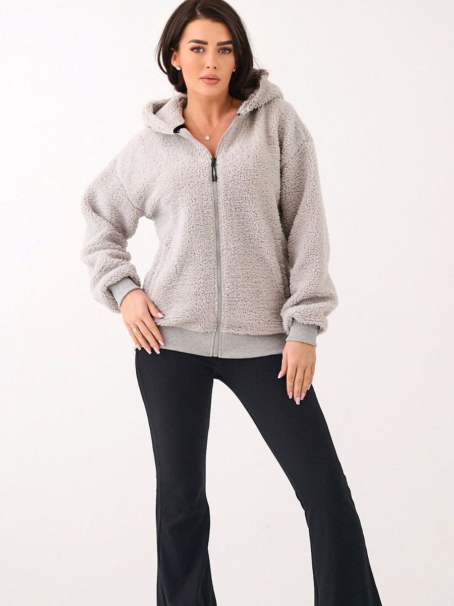Casual women’s sweatshirt in the “sheep” style is the perfect choice for everyday wear on cooler days. Made of soft and pleasant to the touch polyester, it provides comfort and a pleasant feeling of warmth. A model of standard length with long sleeves, equipped with a practical hood protecting against wind and cold. The sweatshirt fastens with a zipper, which increases comfort of use and allows for easy adjustment of styling. Additional advantages are the ribbing at the bottom and at the sleeves, which improve fit and prevent heat loss. The smooth pattern gives the sweatshirt a universal character, and the inset pockets are a functional addition for small items or warming hands. Perfect for everyday casual outfits.