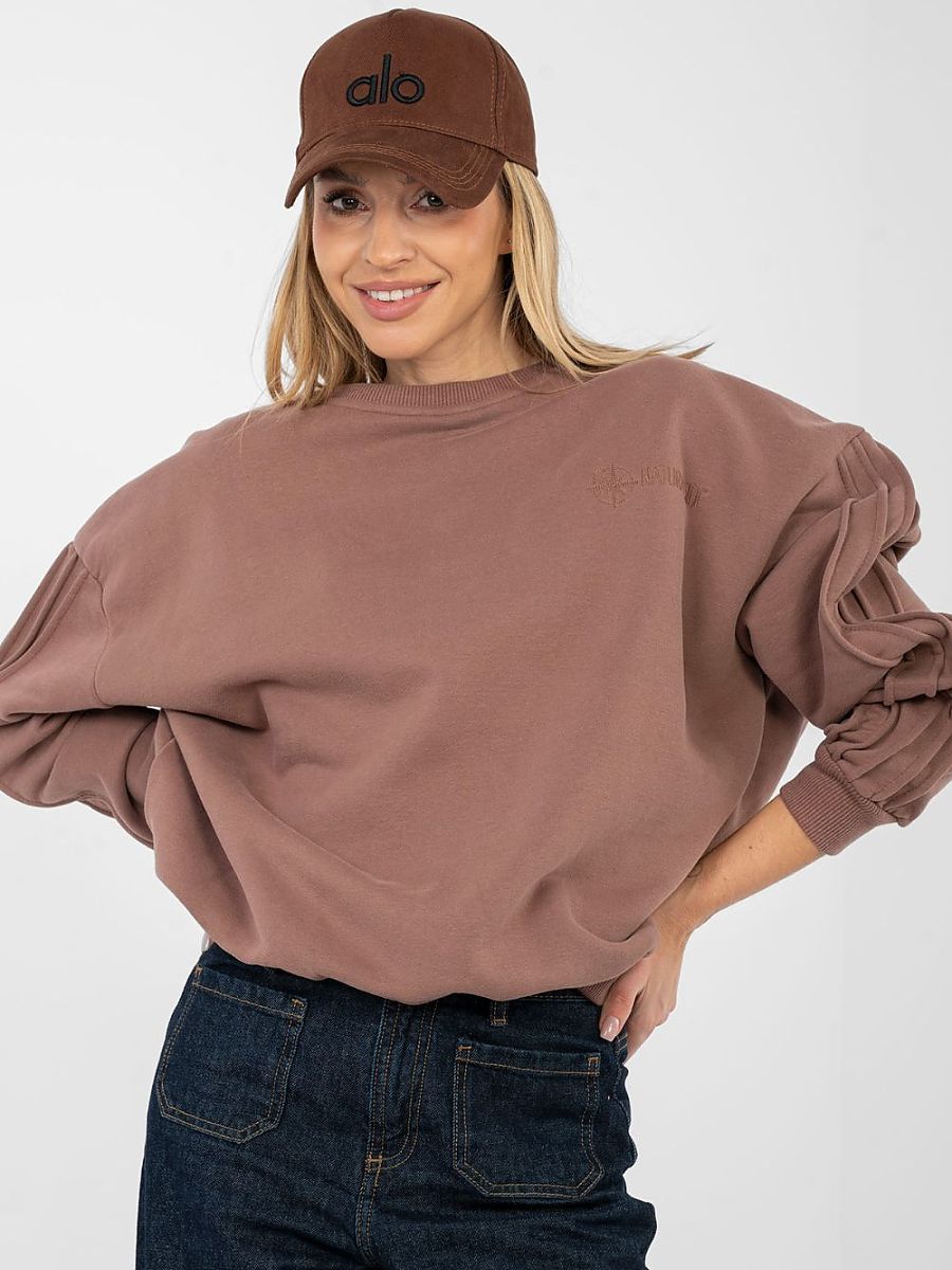 Women’s casual style sweatshirt is a perfect everyday proposal, combining comfort with subtle details. Made of high-quality cotton with elastane, it is soft, elastic, and pleasant to wear, while at the same time fitting well to the silhouette. The model of standard length has a round neckline and a long sleeve decorated with decorative seams, which give the sweatshirt a modern and original character. The lack of fastening emphasizes the minimalist cut and ensures maximum comfort of use. The smooth pattern makes the sweatshirt extremely versatile, while a small embroidery placed at chest height on the left side is a delicate, feminine accent that subtly distinguishes the model. Ideal for everyday stylizations, it goes great with jeans, sweatpants, or leggings.
