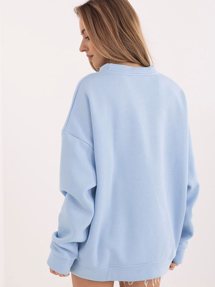 Classic women’s sweatshirt with a casual character, combining comfort and style in everyday wear. Made of high-quality cotton with a touch of elastane, it is soft, stretchy, and pleasant to the touch, providing comfort throughout the day. The model has a standard length, long sleeves, and a round neckline, making it perfect for various stylings. The delicate embroidery on the front gives it a subtle, feminine character. The sweatshirt has no fastening and is lightly insulated, making it perfect for cooler days, guaranteeing warmth and comfort.