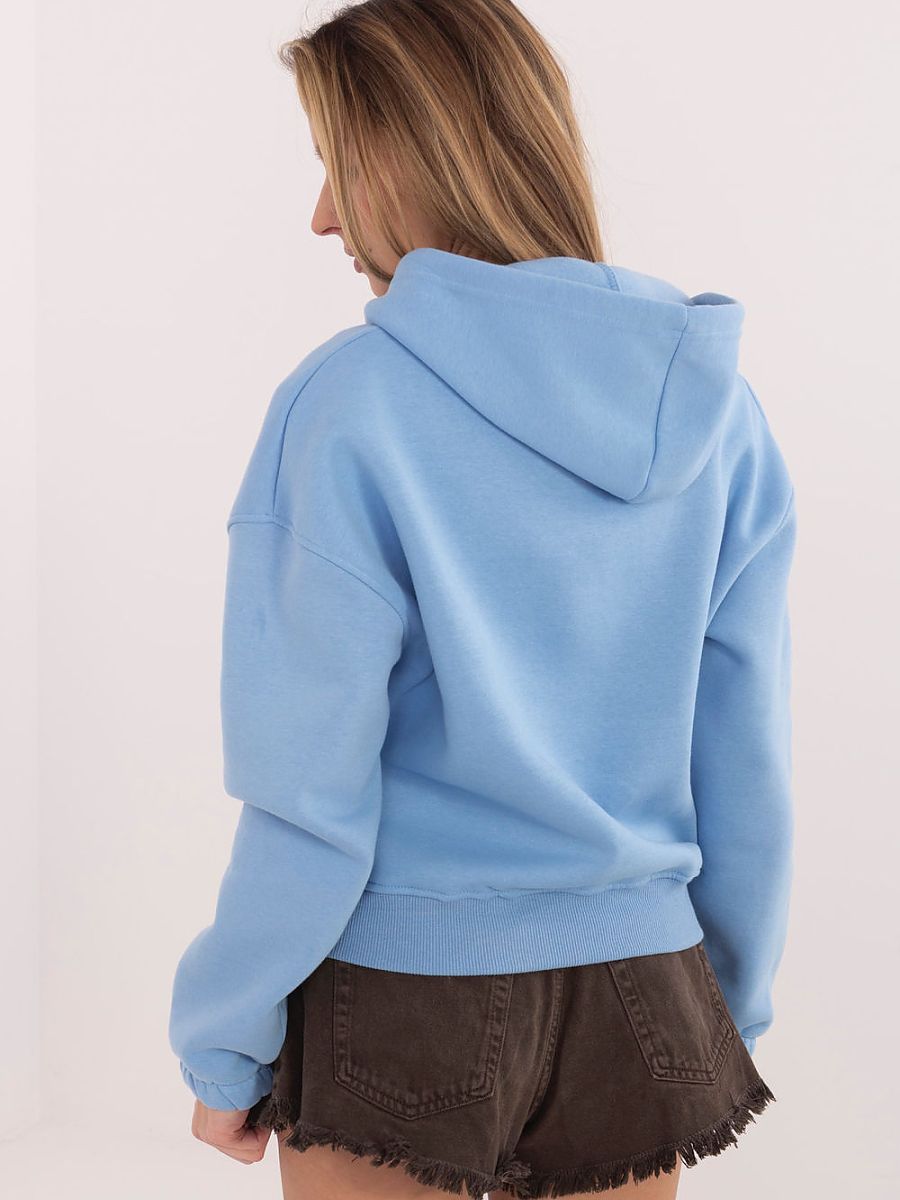 Stylish and comfortable women’s sweatshirt in a casual version is the perfect choice for everyday wear. It will work great for walks, shopping or meetings with friends. Its universal, smooth pattern makes it easy to match to different styles, both sporty and more urban. The short length model perfectly emphasizes the silhouette and goes well with jeans, leggings or sweatpants. The sweatshirt is fastened with a practical zipper, ensuring comfort and the ability to adjust the level of fastening. Long sleeves and a functional hood additionally protect against the cold. Made of high-quality cotton and polyester blend, it combines wearing comfort with material durability. The insulation on the inside makes the sweatshirt perfect for cooler days, providing pleasant warmth and comfort throughout the day. A must-have in every woman’s wardrobe, practical, universal and always fashionable.