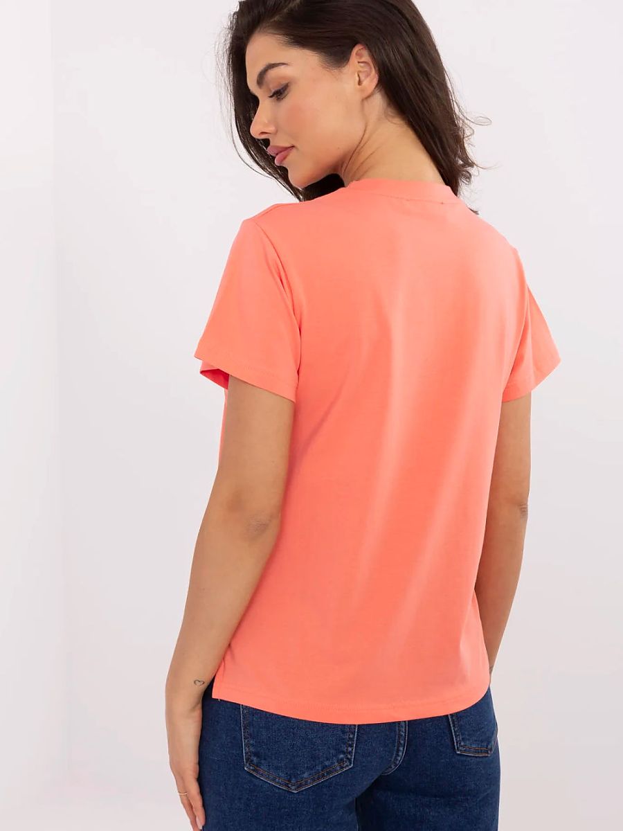 Light and comfortable women’s t-shirt, perfect for everyday occasions. Made of a dominant blend of cotton and elastane, it provides comfort and freedom of movement. A model of standard length, with short sleeves and a classic, round neckline, fits perfectly into casual stylizations. The t-shirt is decorated with an eye-catching application, sequins formed in the shape of a butterfly, which attract attention and give the whole a fashionable character. The dominant pattern combined with a subtle print creates an interesting and versatile look.
