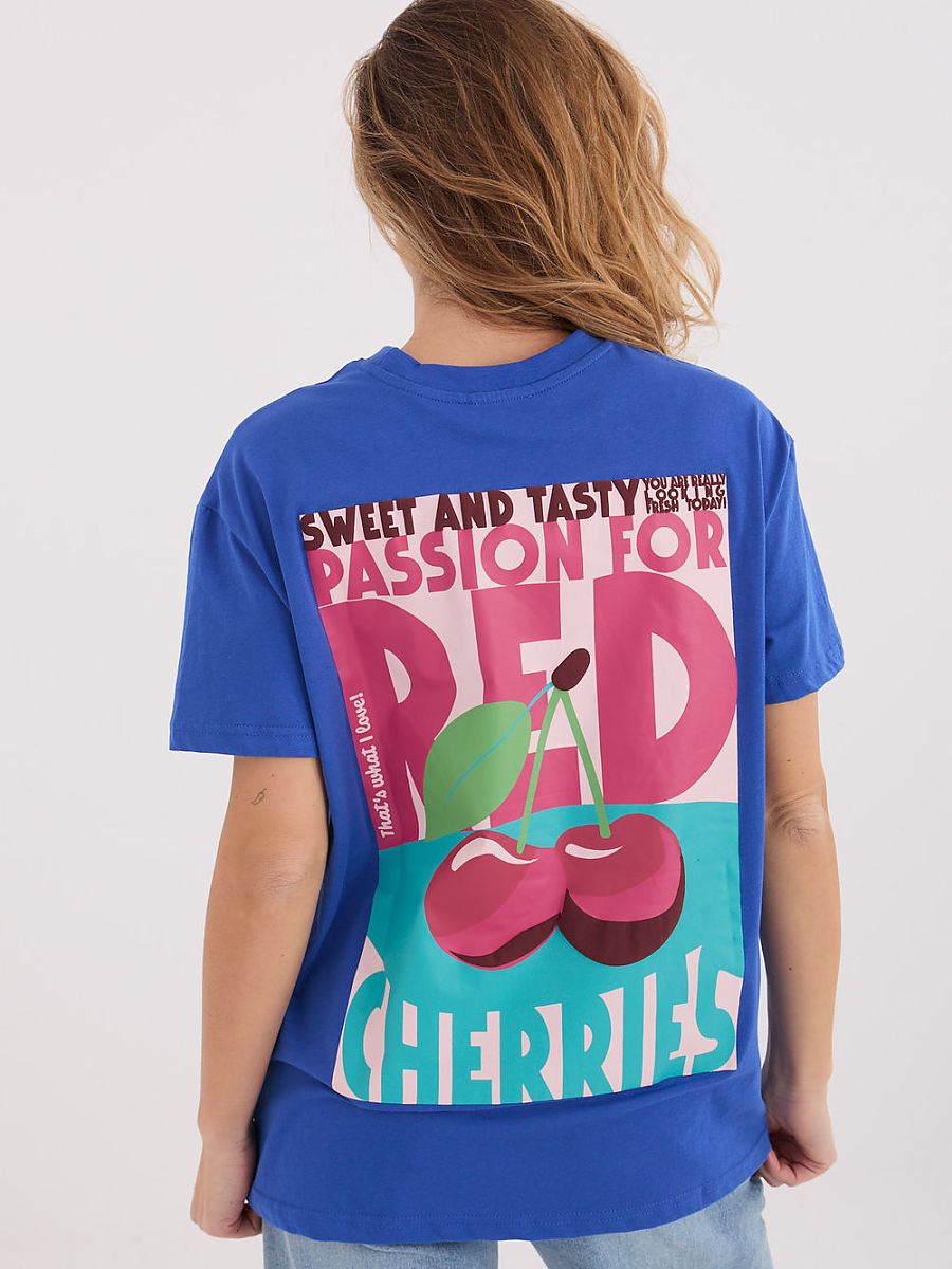 Women’s T-shirt made of breathable, high-quality cotton, perfect for everyday casual styling. The model with a standard length and short sleeves ensures comfortable wear throughout the day. The round neckline gives a classic, universal character, making the shirt great both on its own and paired with a sweatshirt or jacket. A bold inscription is located at chest height, which is the dominant element of the design, emphasizing a modern, urban style. Additionally, inscriptions and prints are placed on the back, creating an impressive graphic composition. It is an excellent choice for women who appreciate comfort and a fashionable look in every situation.