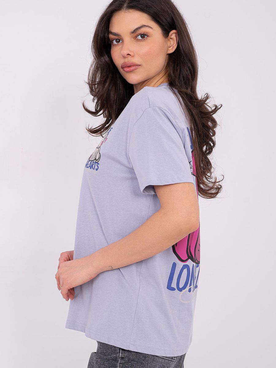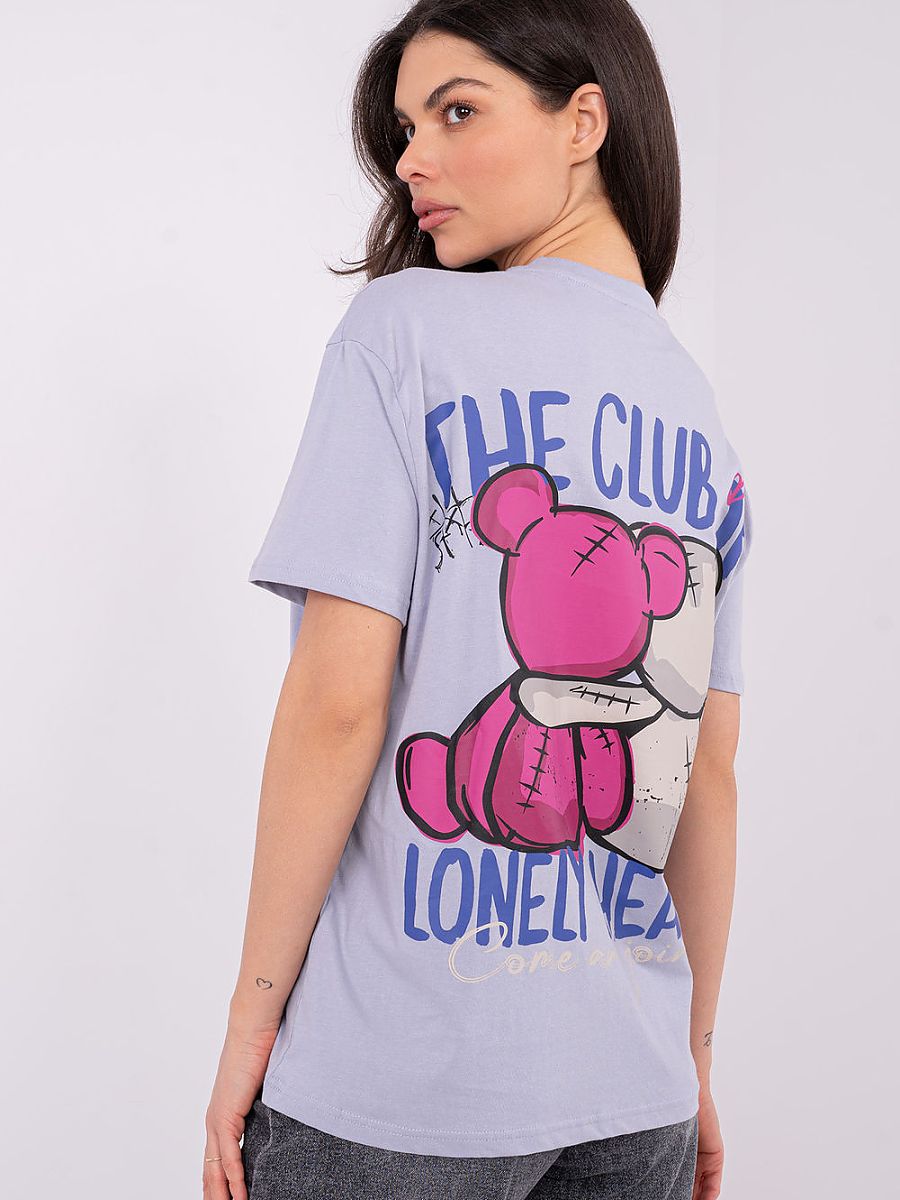 Women’s casual T-shirt is a comfortable and fashionable choice for everyday wear. Made of 100% soft cotton, it provides comfort, breathability, and a pleasant fit to the silhouette. The smooth base of the T-shirt has been embellished with prints and inscriptions, a small detail on the front, and a larger, eye-catching motif on the back, giving the shirt a modern, distinctive character. A model of standard length, with short sleeves and a classic round neckline, will work well in casual stylizations, as well as in combination with layers such as a blazer or hoodie, adding style and lightness to every daily outfit.