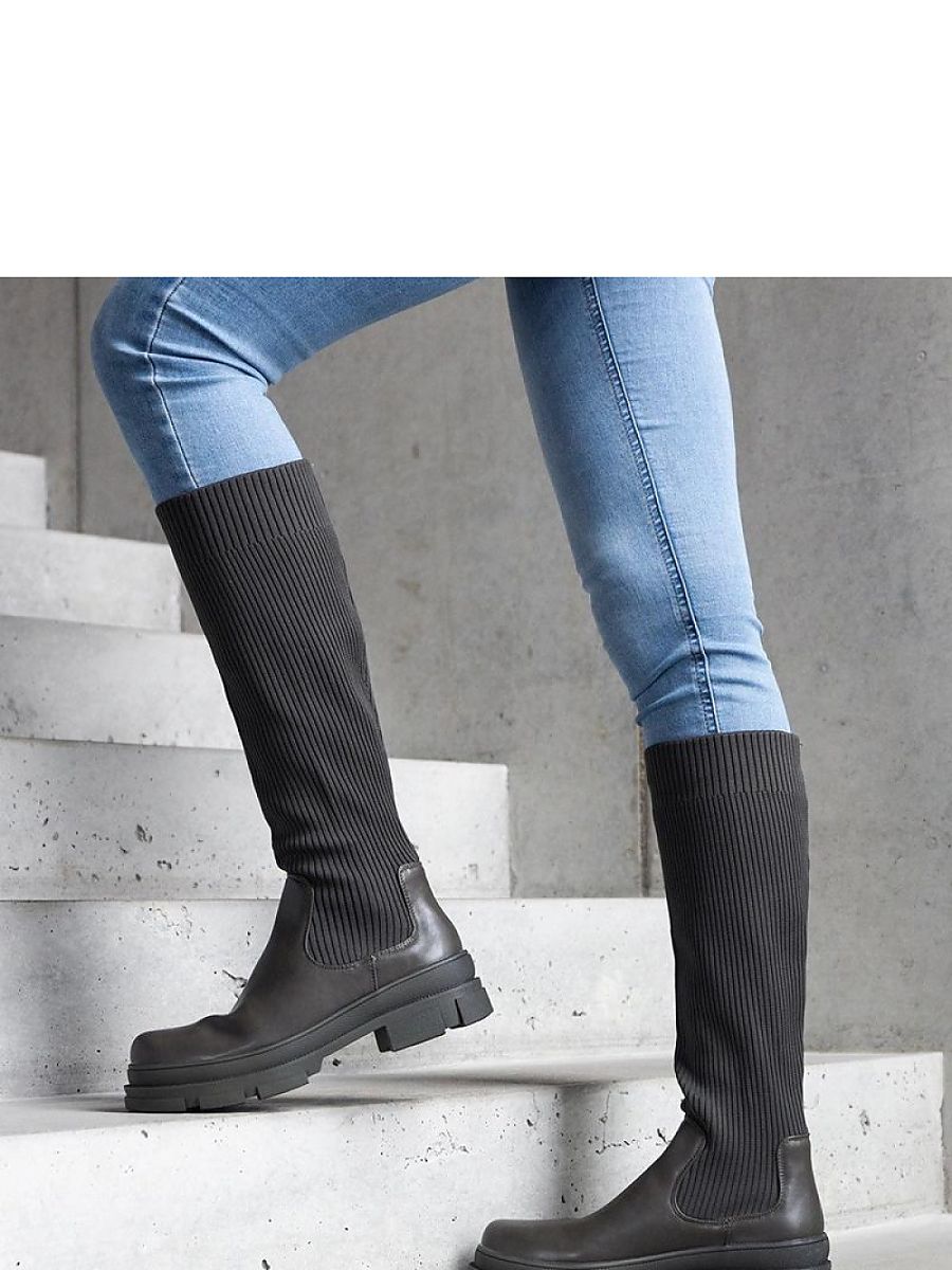 Green Elthea boots are a perfect choice for the upcoming autumn-winter season. Comfortable and fashionable, they have a flexible shaft and a chunky sole that gives them character. Insulated, they will provide warmth even on the coldest days. The boots have an almond toe, platform, and are made of solid rubber, ensuring their durability. Ideal for women who appreciate fashionable and comfortable footwear without overpaying. The slip-on closure makes them easy to put on. The sole colors are green, giving them an original look. Available in the Fall/Spring collection.