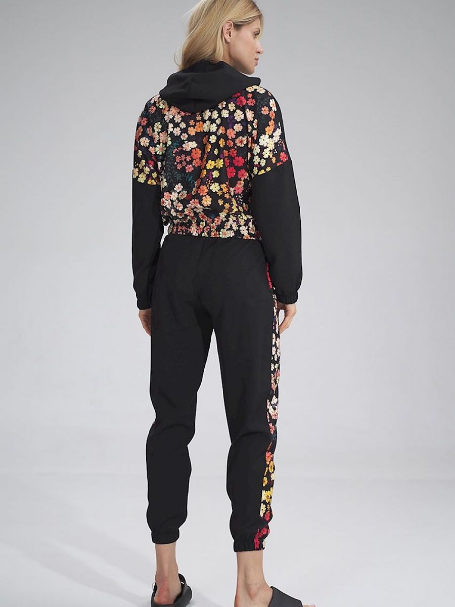 Sporty pants with piping, no pockets, wide elastic waistband and leg bottom.