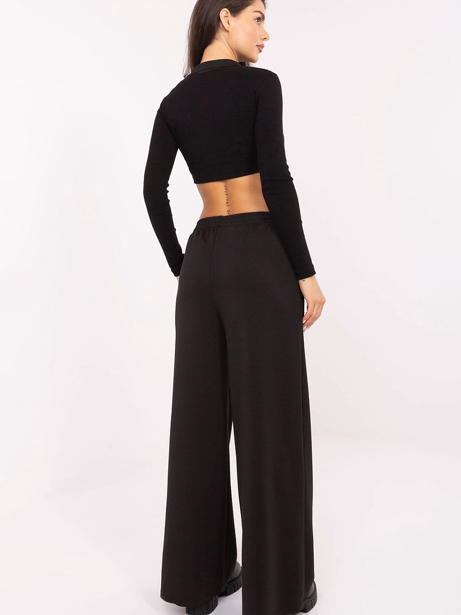 Women’s casual sweatpants, perfect for everyday wear and relaxing at home. Made of soft buttery material, delicate, smooth, and exceptionally pleasant to the touch, from a blend of viscose and polyester. Palazzo style with a high waist, wide legs, and elastic waistband provides comfort and freedom of movement, while side slip pockets add functionality. The smooth texture of the material makes it easy to pair the pants with other casual wardrobe items.