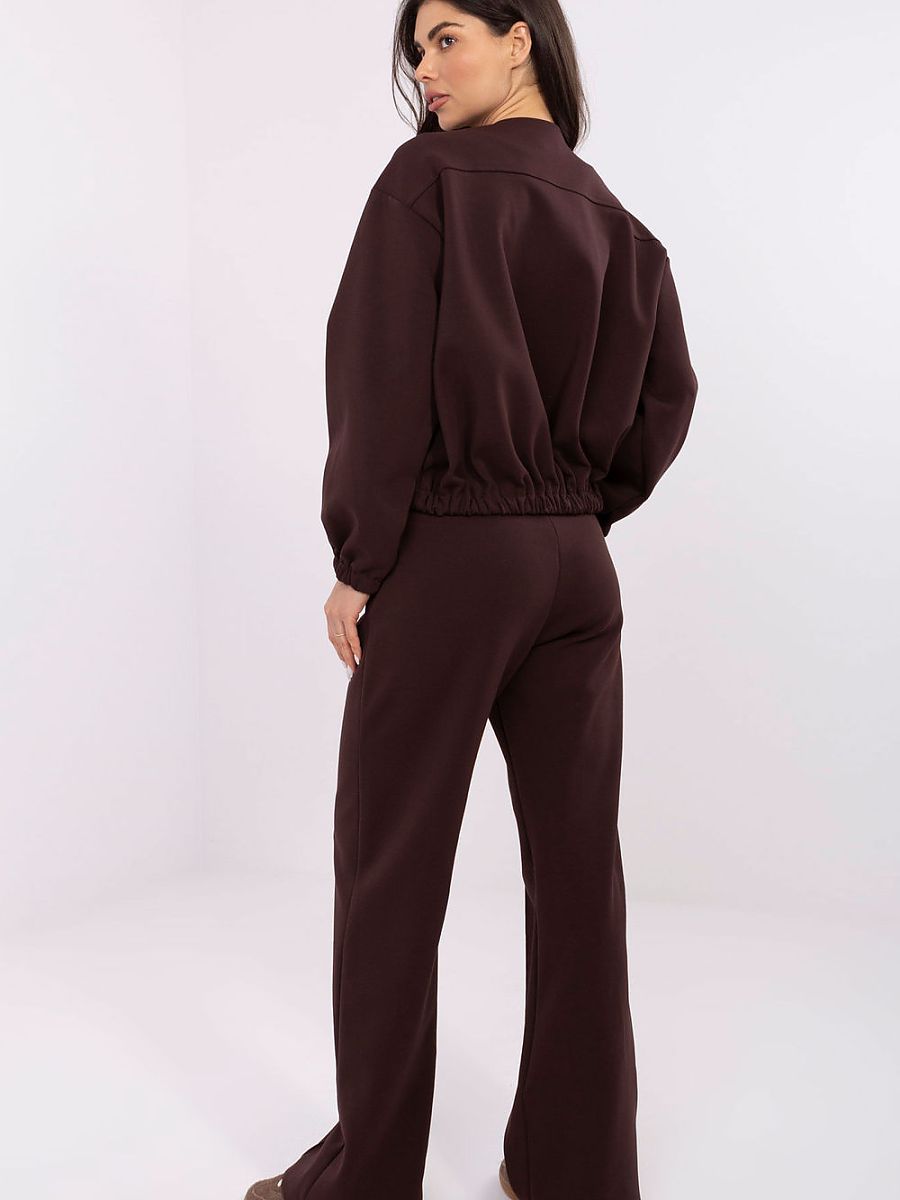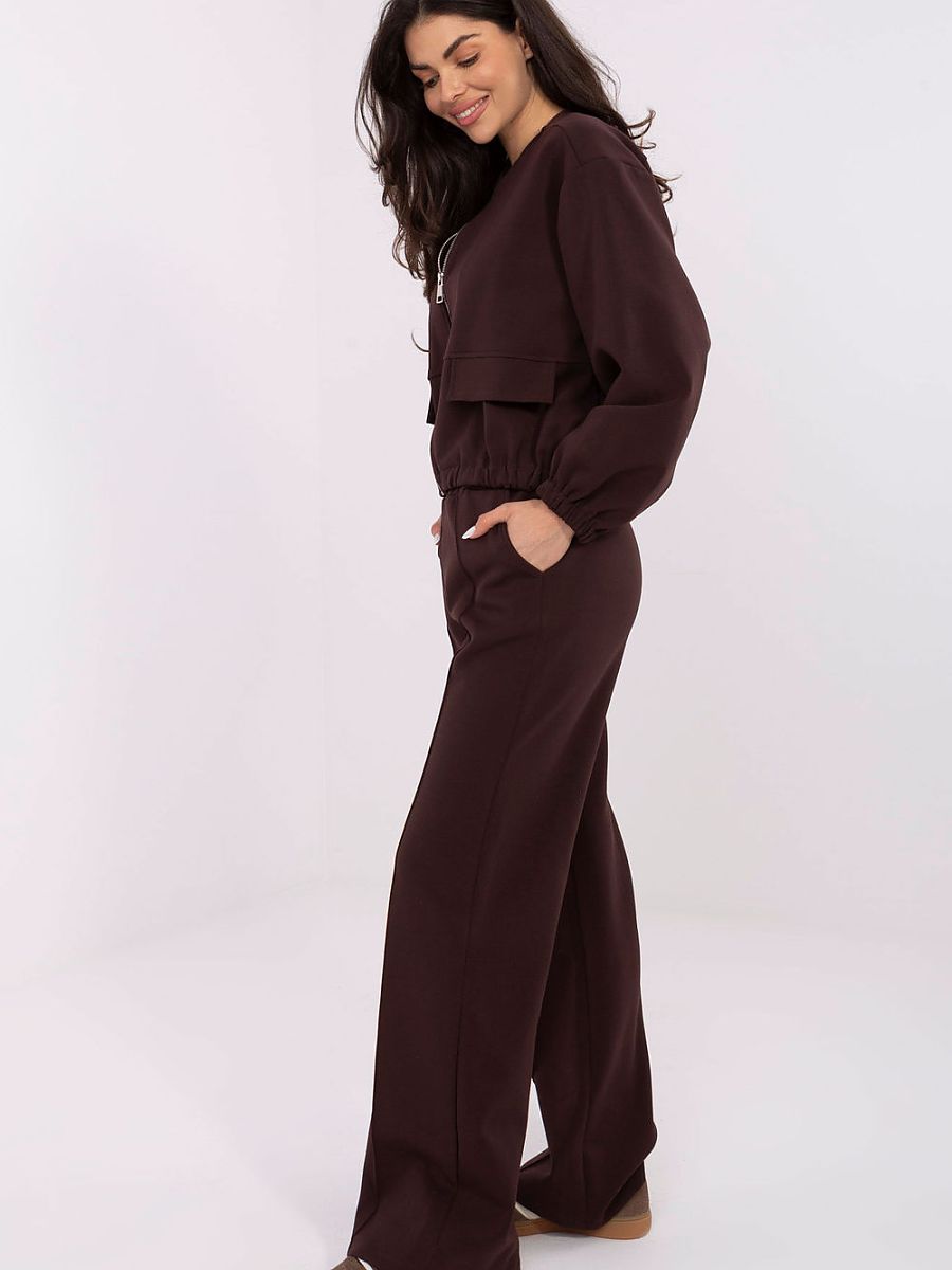Comfortable women’s casual sweatpants are the perfect choice for everyday activities when comfort and a fashionable look matter. Their smooth pattern and modern form make them perfect for both sporty stylizations and more casual outfits for everyday wear. The model is made of a soft and breathable blend of cotton and polyester, making the pants pleasant to the touch, durable, and ensuring comfort when wearing. The high waist emphasizes the waist and guarantees a comfortable fit, while the wide legs give the whole a fashionable, relaxed character. There is a practical tie at the waist for adjusting the circumference, and side slip pockets add functionality. Decorative seams are placed on the front of the legs, subtly diversifying the design and adding stylish finishing touches to the pants. This is the perfect model for women who appreciate comfort, a modern look, and functional details.