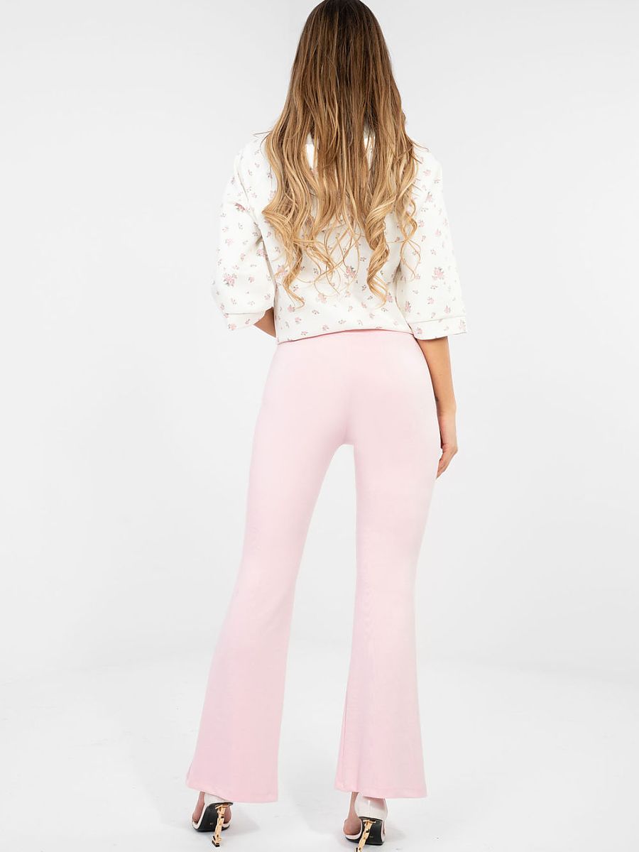 Soft sweatpants made of a buttery material, exceptionally delicate, elastic, and pleasant to the touch. The model features a high waist and wide, flared legs, giving the outfit a casual, slightly retro character. An elastic band is sewn into the waist for a perfect fit and comfortable wear throughout the day. Decorative seams running along the entire length of the legs are placed on the front, visually elongating the silhouette and adding an elegant finish to the whole. The pants will work great in everyday, casual stylings both for work and everyday wear. The smooth material made of viscose and elastane provides comfort, breathability, and beautiful draping on the silhouette. A model without fastening and pockets, designed with maximum comfort and minimalist style in mind.