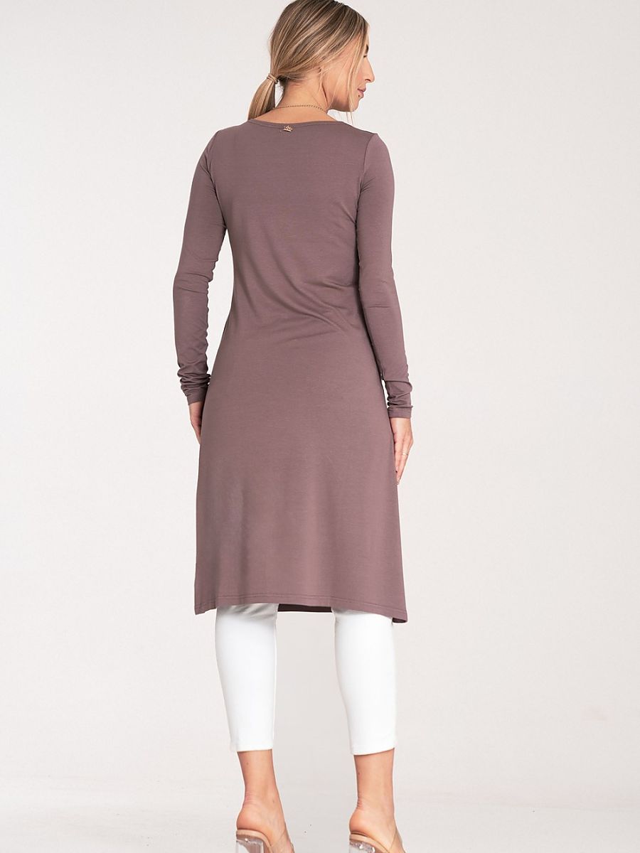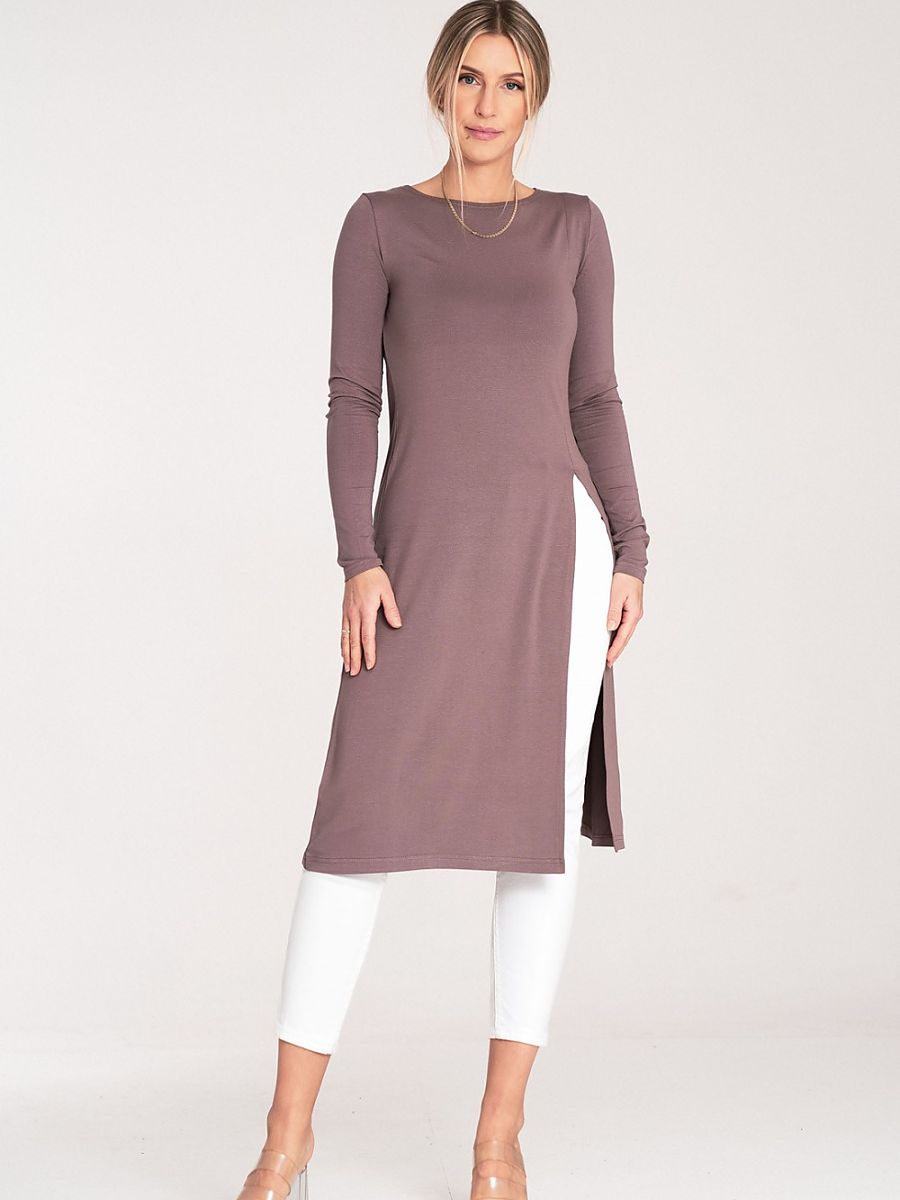 Tunic with long sleeves and a round neckline. A striking slit on the side. An ideal choice for many stylings.