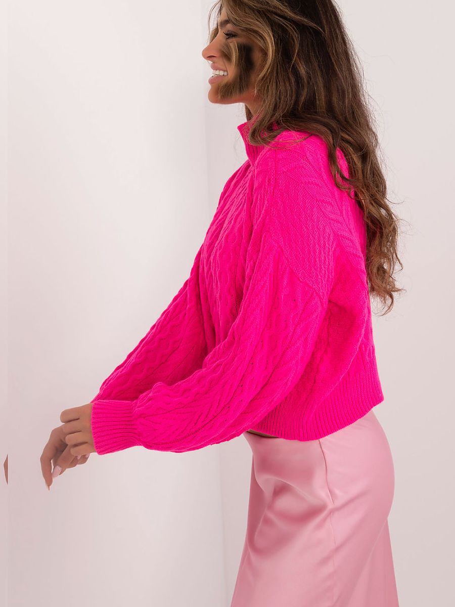 Short turtleneck sweater with a varied texture of material, perfect for everyday wear. Made of a blend of acrylic and wool, it provides warmth and comfort. Long sleeves and a casual style make the sweater perfect for everyday outfits.