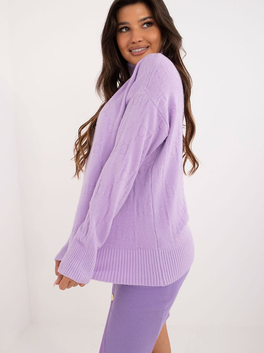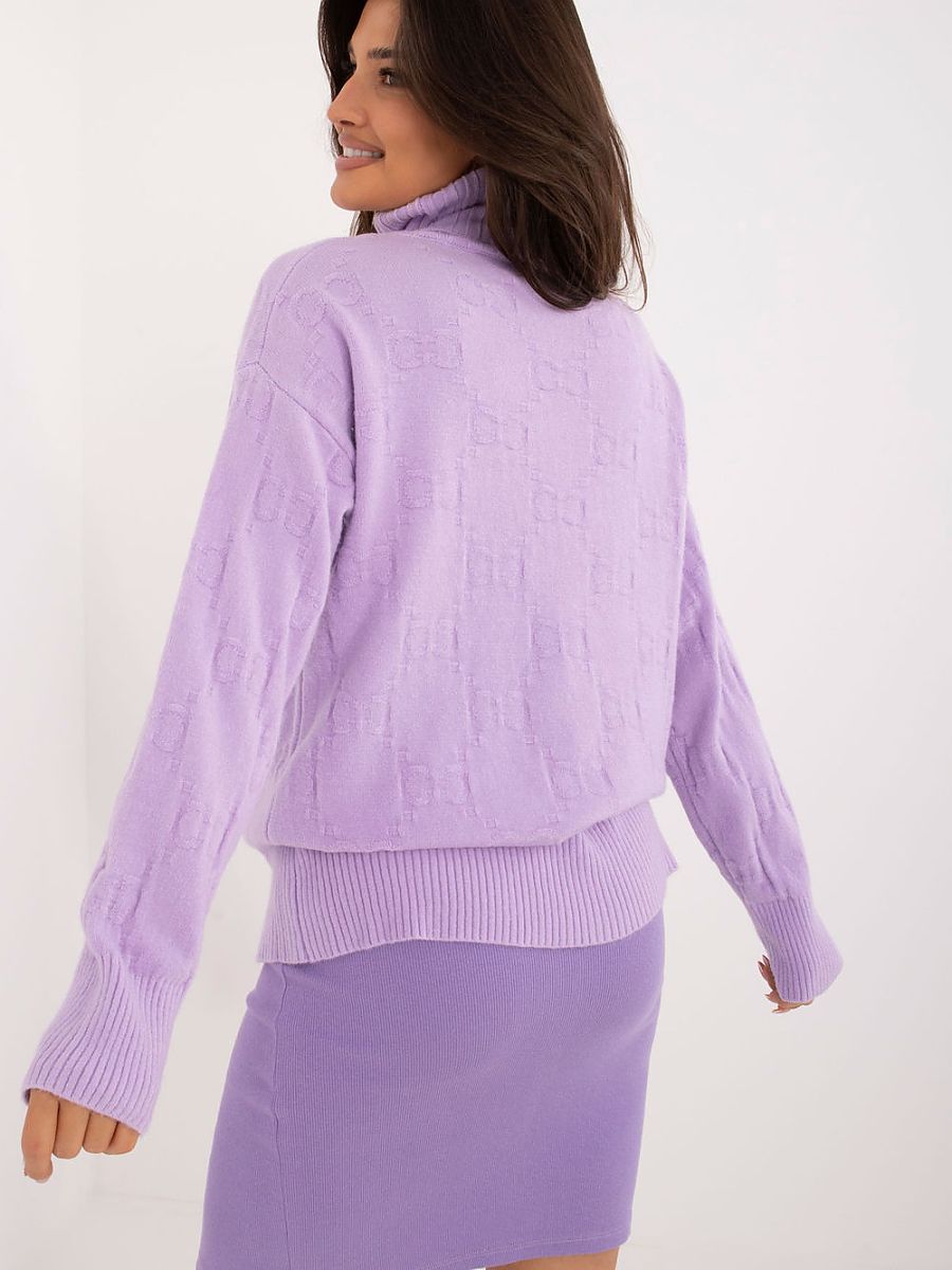 Women’s turtleneck sweater, perfect for casual everyday occasions. Made of material with a varied texture, which gives it a unique character. The dominant material is a blend of acrylic, polyester, and polyamide, which ensures durability and comfort when wearing. The sweater has a standard length and long sleeves, making it a versatile choice for cooler days.