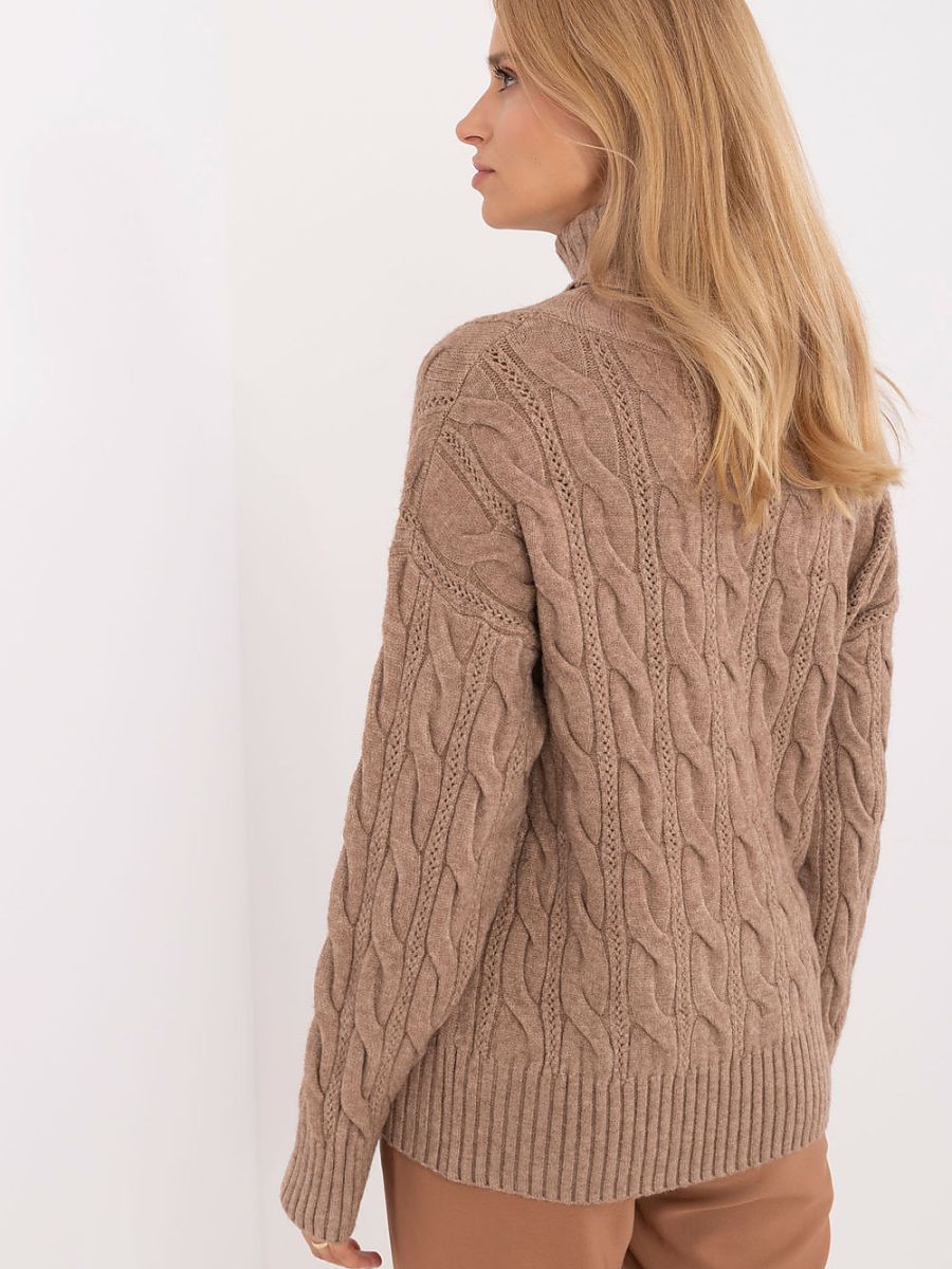 A turtleneck sweater, perfect for everyday casual style. Made of diversified material that combines acrylic, polyester, and polyamide, providing comfort and durability. The sweater has a standard length and long sleeves, making it an excellent choice for cooler days.