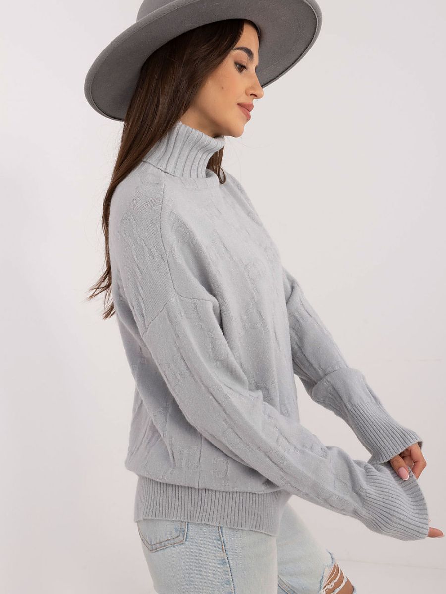 Women’s turtleneck sweater, perfect for everyday casual occasions. Made of material with a varied texture, which gives it a unique character. The dominant material is a mixture of acrylic, polyester and nylon, which ensures durability and comfort when wearing. The sweater has a standard length and long sleeves, making it a versatile choice for cooler days.