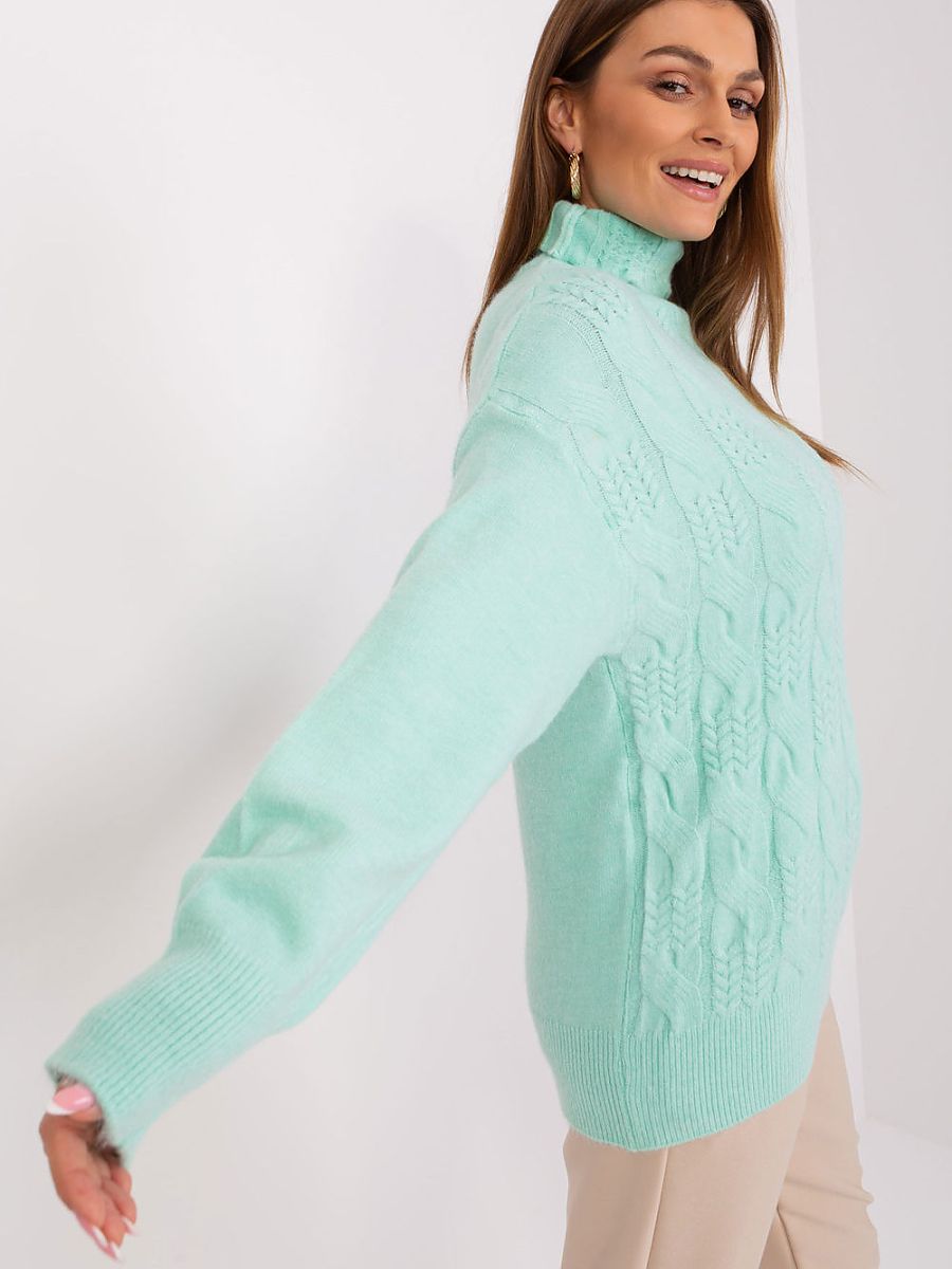 This turtleneck sweater is a perfect proposition for everyday wear, work, or meetings with friends. Its varied texture of the knit on the front gives it a unique character, distinguishing it from other casual clothes. Made of high-quality acrylic, this sweater not only looks great on the body but also provides comfort when wearing it. The long sleeve and turtleneck make it ideal for colder days, adding elegance and style at the same time. The standard length allows for various combinations, both with jeans and a skirt. It is a reliable choice for those who value comfort and a fashionable casual look.
